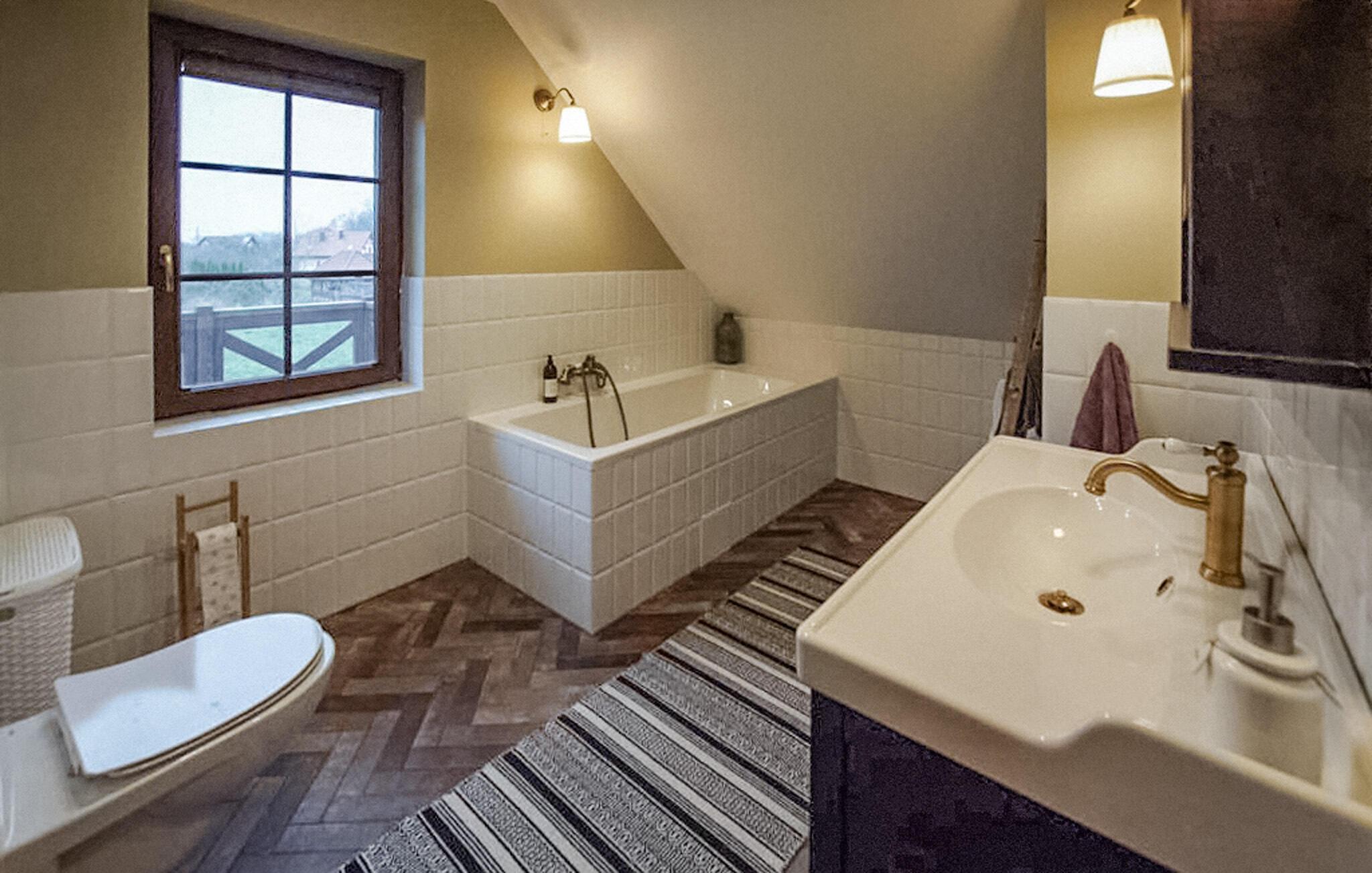- WC mit warmem und kaltem Wasser, Badewanne