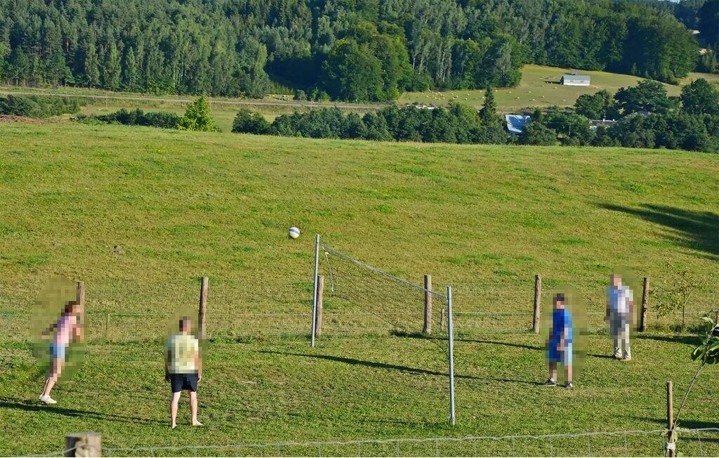 Das große, eingezäunte Gemeinschaftsgrundstück bietet Erwachsenen und Kindern vielfältige Beschäftigungsmöglichkeiten, umgeben von einer idyllischen Landschaft. Messen Sie sich mit anderen Gästen auf dem Volleyballfeld und gönnen Sie Ihrem Kind Spaß an den zahlreichen Spielmöglichkeiten. Freuen Sie sich auf gesellige Grillabende und stimmungsvolle Momente an der Feuerstelle.