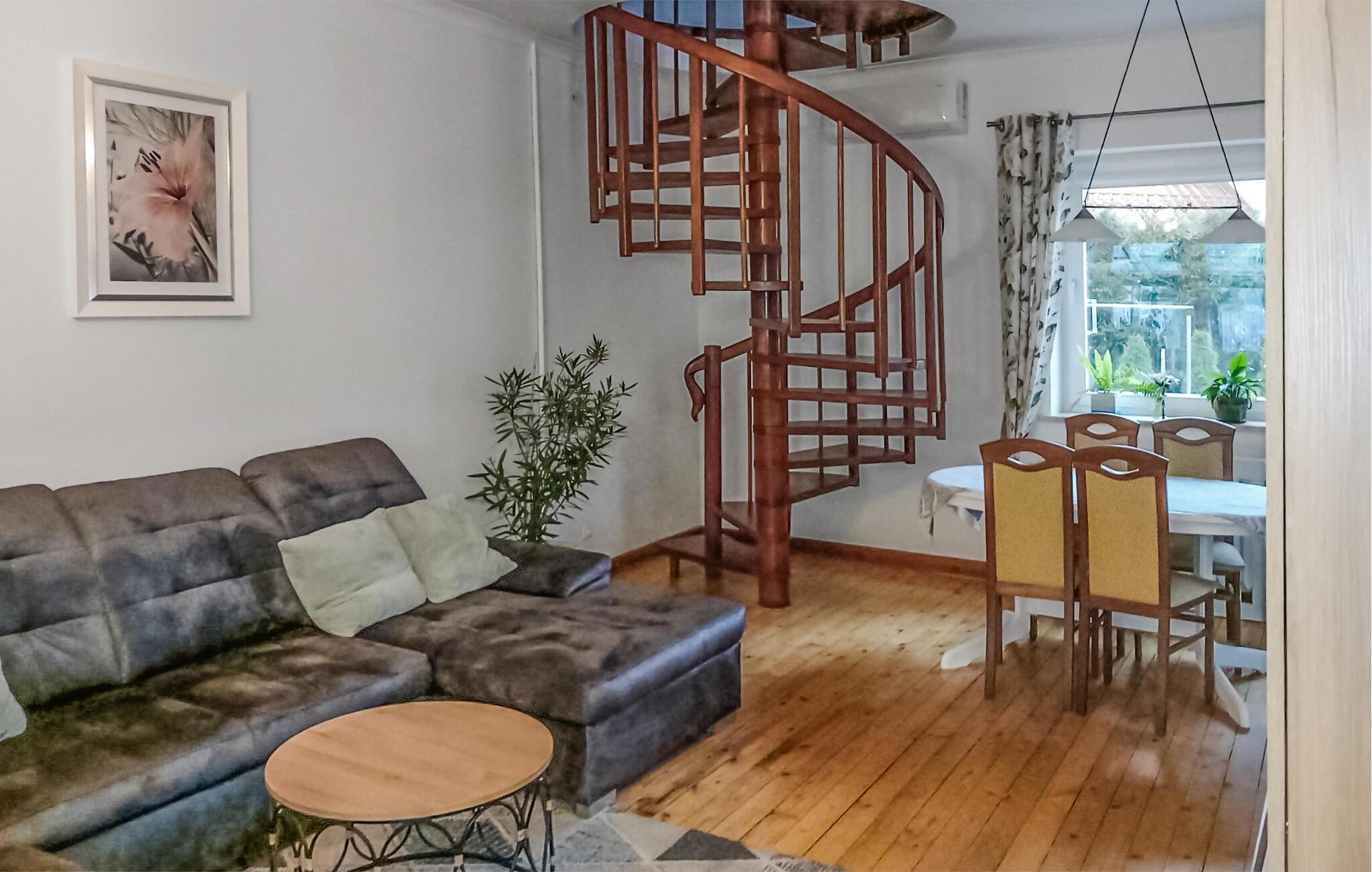 Verbringen Sie mit Ihrer Familie einen erholsamen Urlaub in diesem familiären Haus in Pisz. Schon beim Betreten versprühen die Einrichtung und das Ambiente, Gemütlichkeit und das Gefühl eines zweiten Zuhauses. Entdecken Sie die beiden Etagen des Hauses, die durch eine Wendeltreppe verbunden sind und somit den Wohnbereich im Erdgeschoss von den Schlafzimmern im oberen Stockwerk trennen. Genießen Sie den angenehmen Komfort beim Kochen oder Relaxen auf der Sofalandschaft.