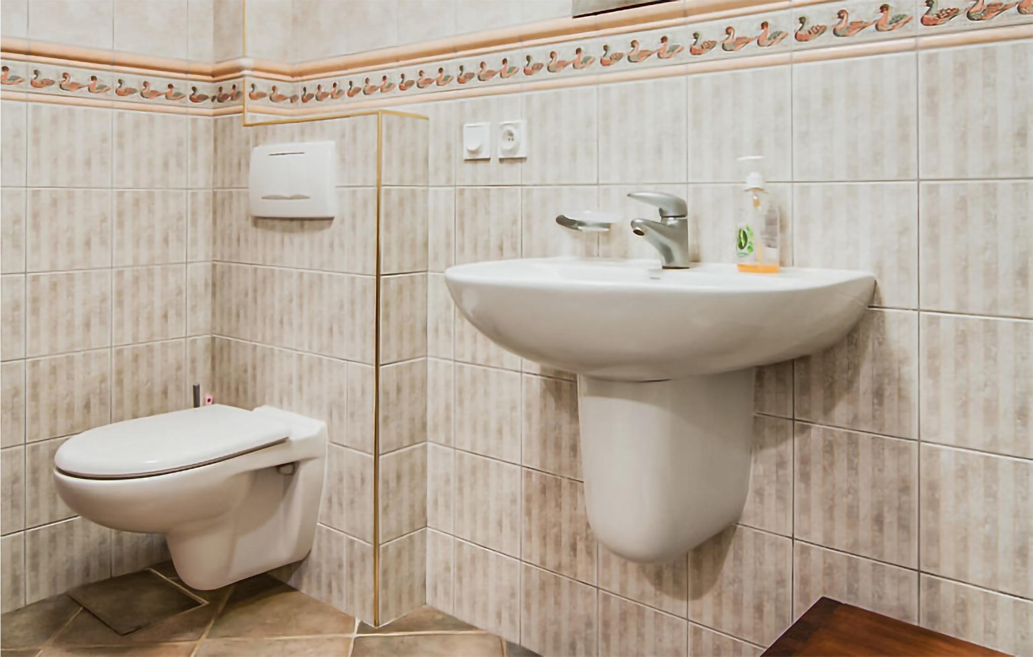 Badezimmer (nr. 1) - WC. Warmes und kaltes Wasser. Dusche