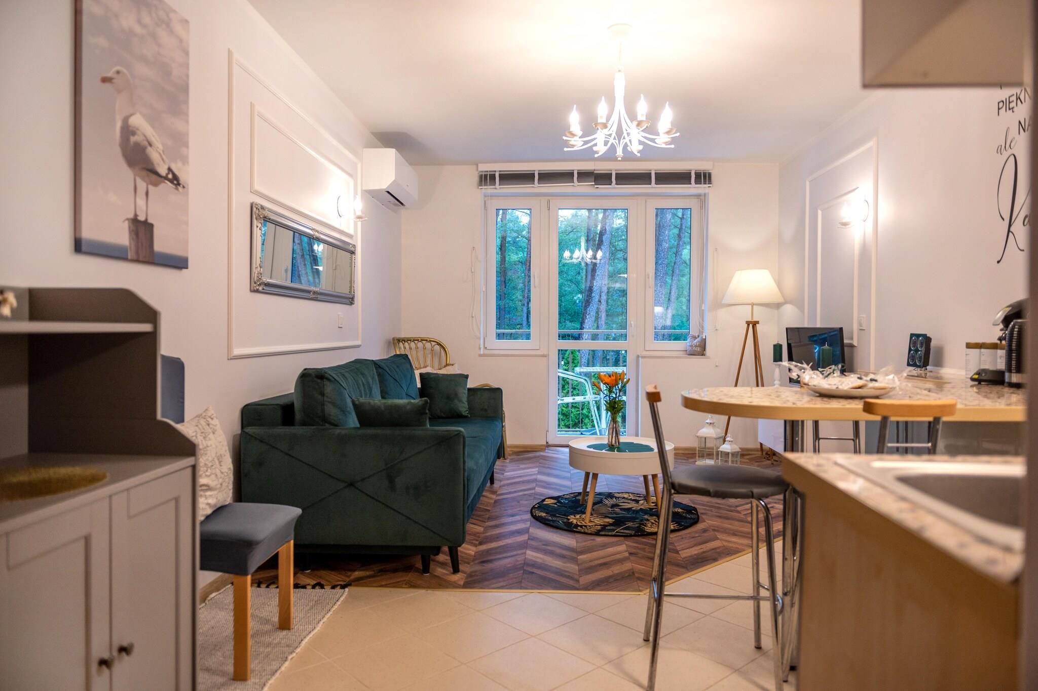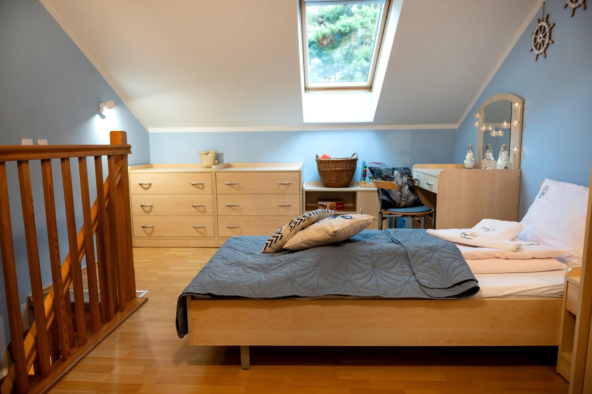 Ein gemütliches Apartmenthaus an einem ruhigen Ort, umgeben von einem Wald, am Rande eines Badeortes. Der Strand ist 1 km entfernt. Bis zum Ortszentrum sind es ca. 600 m. Ganzjährig geöffnetes Apartment auf 2 Ebenen mit Balkon und Blick auf den Wald. Die untere Ebene befindet sich im ersten Stock des Gebäudes. Es gibt ein Wohnzimmer, das mit einer gut ausgestatteten Küche verbunden ist, und ein Badezimmer mit Dusche. Das Wohnzimmer verfügt über ein Doppelschlafsofa und einen Fernseher. Auf der oberen Ebene befindet sich ein Schlafzimmer (2 Einzelbetten). Es gibt eine Klimaanlage mit Kühl- und Heizfunktion. WLAN ist verfügbar. Im Preis des Aufenthalts sind enthalten: Strom- und Wasserverbrauch, Klimaanlage, Parkplatz, Internet. Babybett und Hochstuhl auf Anfrage erhältlich. Pobierowo ist ein Ferienort in der Woiwodschaft Westpommern. Es liegt am Ufer der Ostsee, im Zentrum der malerischen Rewal-Küste. Wie es sich für eine Küstenstadt gehört, bietet Pobierowo den Touristen einen sauberen Strand und einen bewachten Badebereich. Hier gibt es auch einen Angelstützpunkt, der sich perfekt als Hintergrund für Erinnerungsfotos eignet. Pobierowo ist ein perfekter Ort für Kinder, Sportler und Verliebte. Hier gibt es viele romantische Orte für zwei. Es gibt ein Papageienhaus, ein Ozeanarium und riesige aufblasbare Spielplätze. Kinder werden sich über einen Besuch im Walpark im nahegelegenen Rewal (ca. 7 km) freuen. Bei schlechtem Wetter bietet sich ein Ausflug in eines der mehreren öffentlichen Hallenbäder an. Der Stolz der Stadt und der gesamten Region ist die renovierte Schmalspurbahn, die Ihnen einen reizvollen Ausflug in benachbarte Ferienorte ermöglicht.