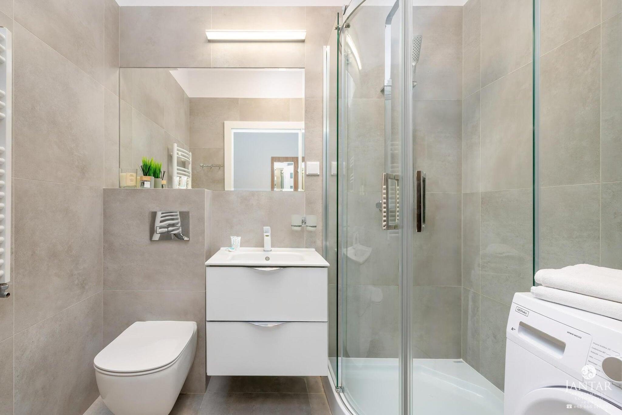 Komplex von Ferienwohnungen im Zentrum des Ortes, nur 70 m vom Strand entfernt. In unmittelbarer Nähe befinden sich Cafés und Restaurants, sowie ein Hotel mit SPA-Einrichtungen (Hallenbad, Sauna, Whirlpool). Die komfortable Ferienwohnung bietet Platz für 4 Personen. Es befindet sich im ersten Stock (es gibt einen Aufzug). Es gibt einen Balkon mit Gartenmöbeln. Die Wohnung besteht aus einem Wohnzimmer, einer Küche, einem Schlafzimmer und einem Badezimmer mit Dusche (es gibt eine Waschmaschine). Das Wohnzimmer verfügt über ein Doppelschlafsofa, einen Fernseher und einen Tisch mit Stühlen. Zentralheizung. Es gibt WLAN. Es gibt Parkplätze. Im Preis des Aufenthalts sind enthalten: Strom- und Wasserverbrauch, Heizung, Parkplatz, Internet. Babybett und Hochstuhl auf Anfrage erhältlich. Sehenswürdigkeiten in der Umgebung: Pobierowo ist ein Ferienort. Es liegt am Ufer der Ostsee, im Zentrum der malerischen Rewal-Küste. Pobierowo bietet Touristen einen sauberen Strand und einen bewachten Badebereich. Hier gibt es auch einen Angelstützpunkt, der sich perfekt als Hintergrund für Erinnerungsfotos eignet. Pobierowo ist ein perfekter Ort für Kinder, Sportler und Verliebte. Kinder freuen sich über einen Besuch im Walpark im nahe gelegenen Rewal (ca. 7 km) mit echten Meeresriesen und im Märchenhäuschen, wo sie Märchenfiguren persönlich treffen. Bei schlechtem Wetter bietet sich ein Ausflug in eines der mehreren öffentlichen Hallenbäder an. Auch ein hoch oben in den Baumwipfeln schwebender Seilpark mit vielen zu überwindenden Hindernissen sorgt für tolle Unterhaltung für die ganze Familie oder eine Gruppe von Freunden. Natürlich mit entsprechendem Schutz. Der Stolz der Stadt und der gesamten Region ist die renovierte Schmalspurbahn, die Ihnen einen reizvollen Ausflug in benachbarte Ferienorte ermöglicht.