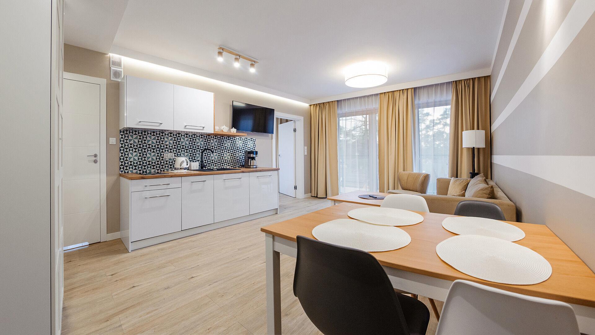 Zu den gewählten Apartments darf man mit dem Hund ankommen. Die zusätzlichen Kosten des Aufenthalts mit einem vierbeinigen Freund betragen 100 PLN (Einzelgebühr). Die Gäste, die den Aufenthalt mit dem Hund planen, bitten wir um eine frühere Kontaktaufnahme mit unserem Service im lokalen Büro.