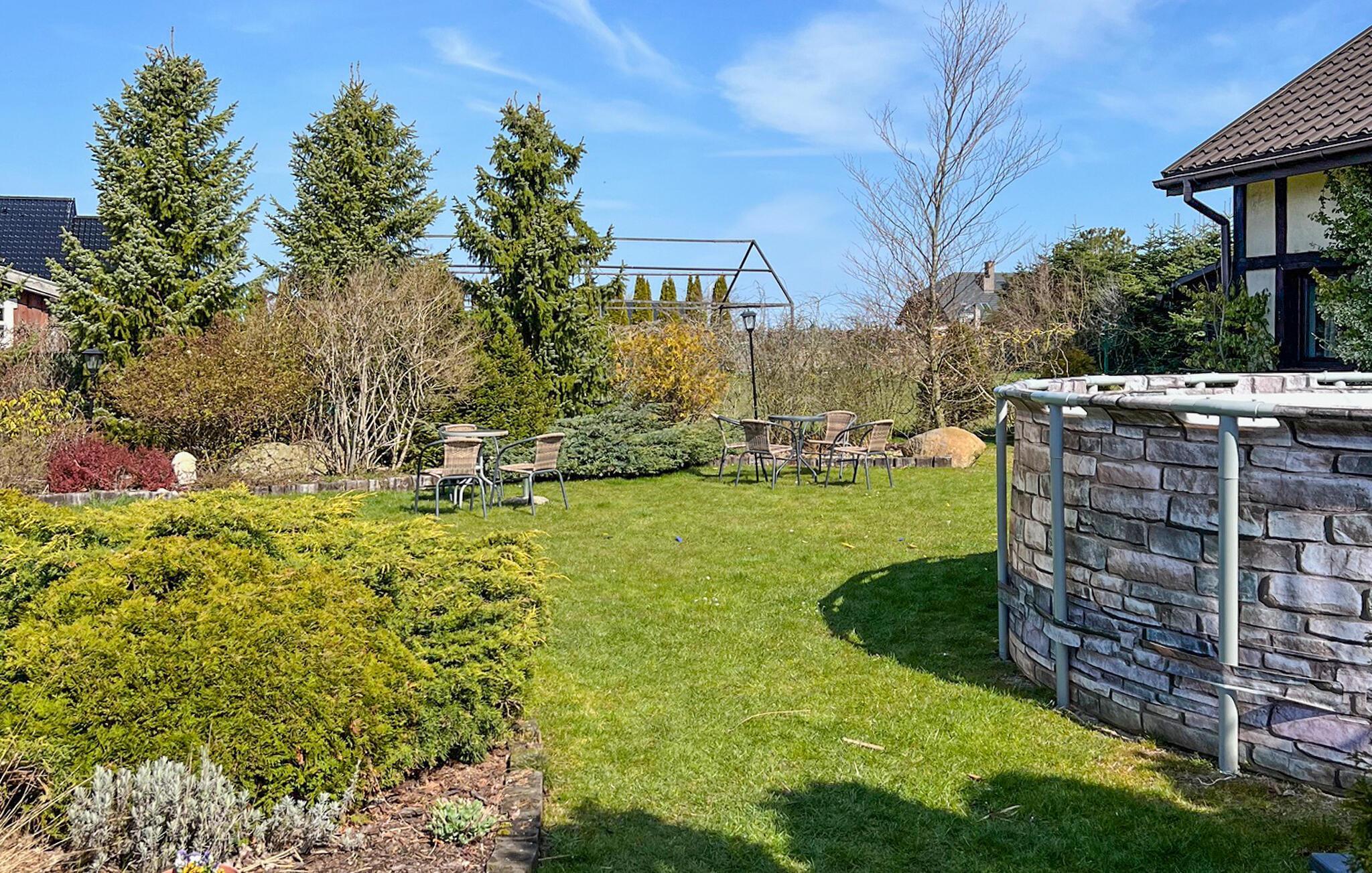 Reizvolles Ferienhaus in Podamirowo. Wir laden Sie herzlich zu einem Urlaub in Polen ein. Podamirowo ist ein kleiner Ort, der viele Touristenattraktionen anbietet. Dieses Ferienhaus liegt auf einem großen, eingezäunten Grundstück und besitzt einen schön gepflegten Garten. Im Garten befindet sich ein Platz, wo Sie in Ruhe frühstücken oder beim Grillen Spaß haben können. Als perfekte Ergänzung für warme Tage ist auch ein großer Swimmingpool vorhanden. Das Haus ist geschmackvoll und modern möbliert. In der Nähe von Podamirowo liegt ein anderer Küstenort – Mielno, der Ihnen einen unvergesslichen Spaziergang in der Labirynth des Hortulus Spectabilis-Gartens anbietet.