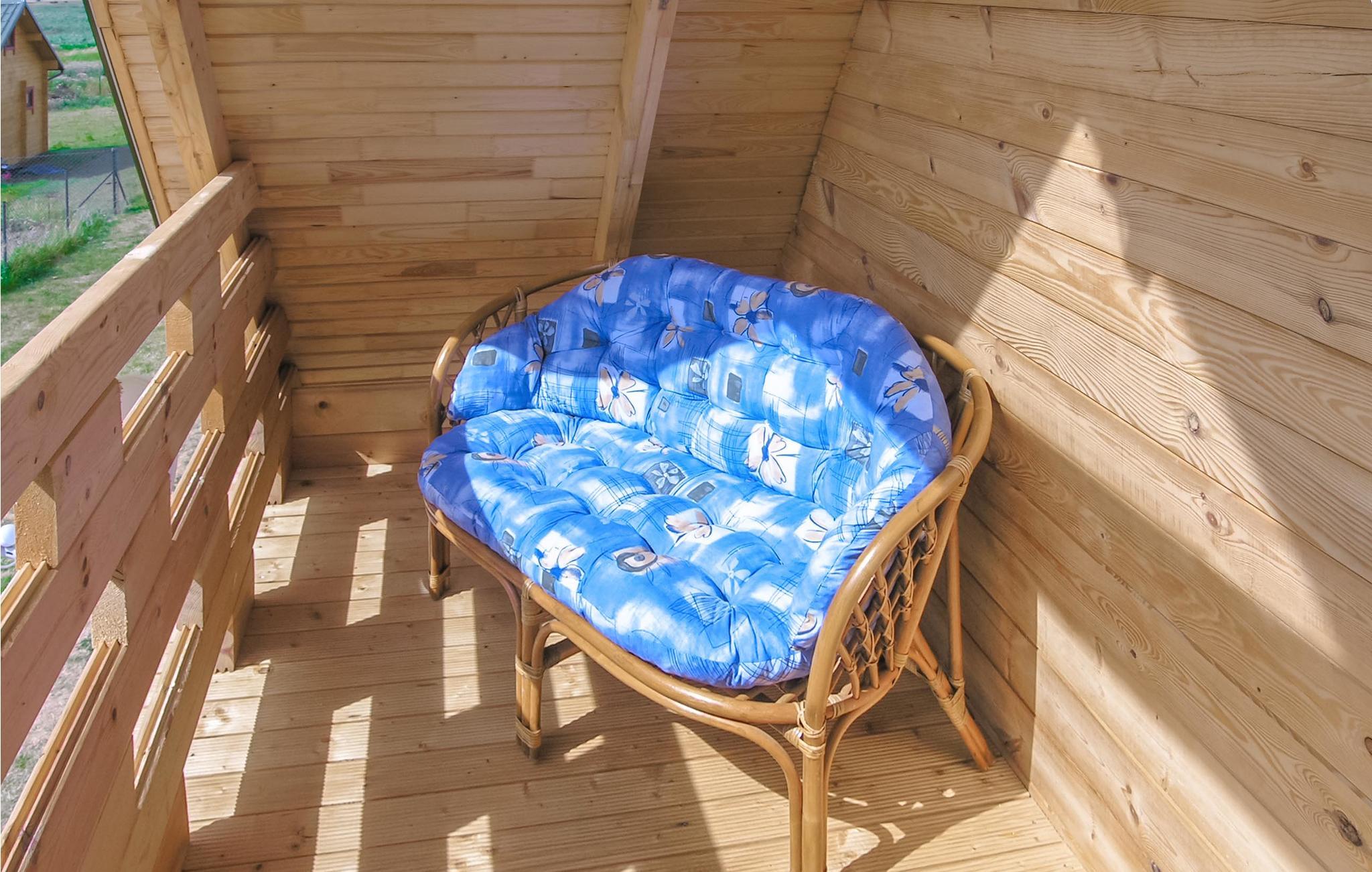 Schönes Ferienhaus aus Holz mit Blick auf den See in Podamirowo.
