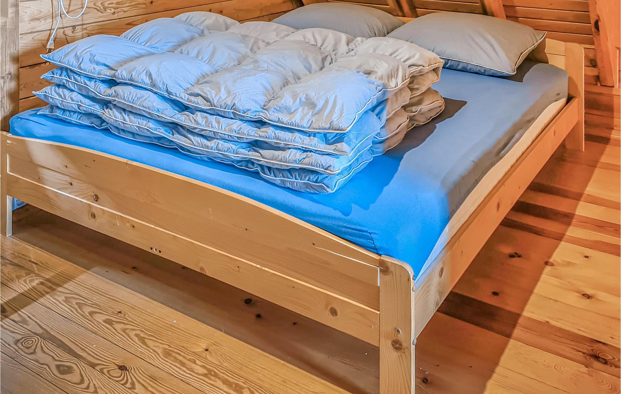 Das Haus liegt auf einem eingezäunten Grundstück. Es verfügt über ein Schlafzimmer mit Verbindungstür mit einem 160 cm breiten Doppelbett und einem 90 cm breiten Einzelbett. Das zweite, geschlossene Schlafzimmer ist mit einem 140 cm breiten Doppelbett ausgestattet. Somit bietet das Ferienhaus Platz für bis zu 5 Personen, die hier einen erholsamen Urlaub verbringen können.