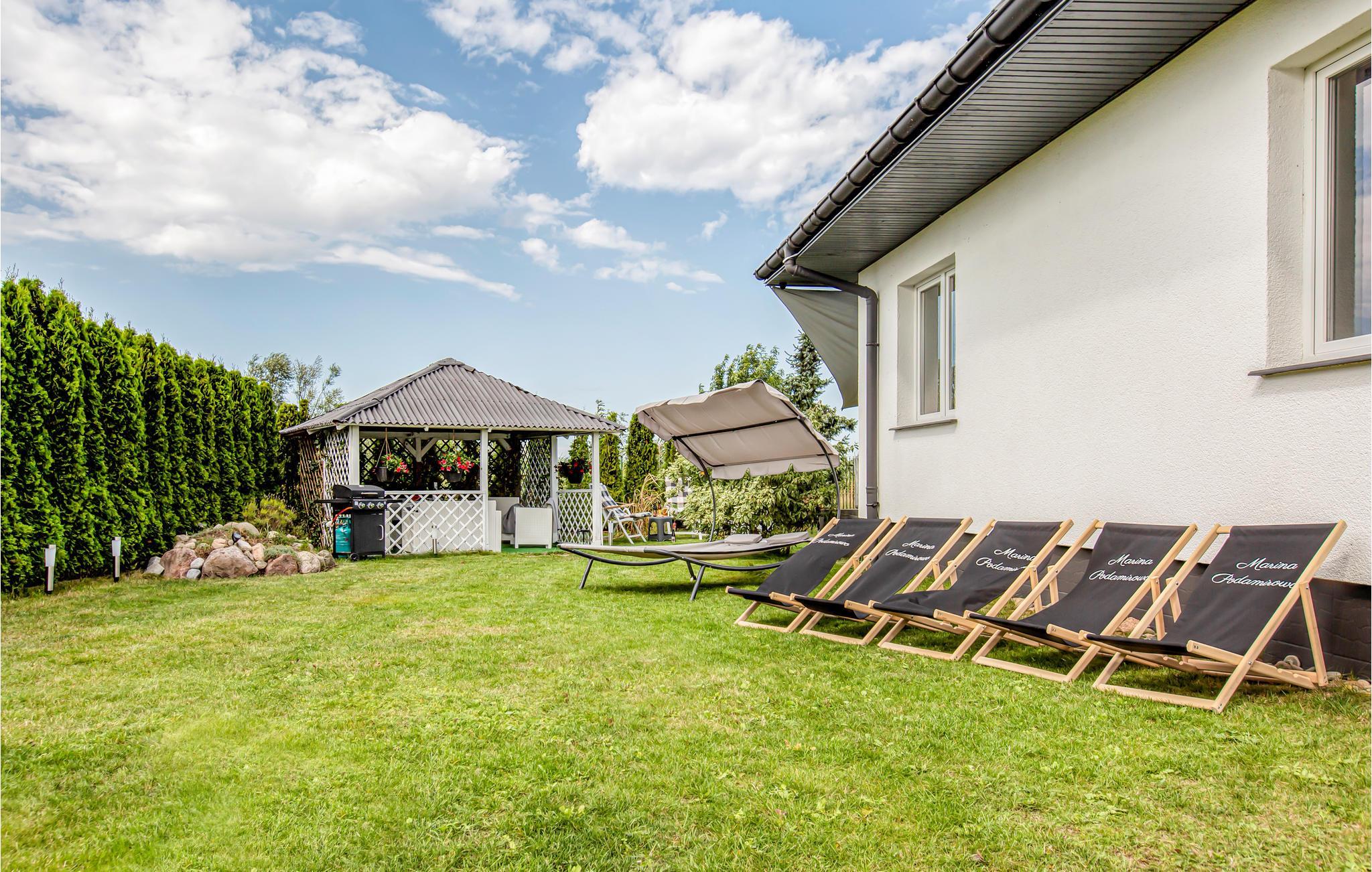 Dieses luxuriöse und gemütliche Ferienhaus befindet sich auf einem gepflegten und eingezäunten Grundstück im malerischen Dorf Podamirowo. Dieses schöne Ferienhaus liegt ideal direkt am Jamno-See (10 m) und nicht weit von den Sandstränden von Mielno (1500 m) entfernt. Das Haus bietet einen atemberaubenden Panoramablick auf den See und seine Umgebung. Das Innere des Gebäudes ist in einem einzigartigen und modernen Stil eingerichtet und gleichzeitig komfortabel und praktisch. Hier finden Sie alles, was Sie für Ihren Urlaub brauchen. Die Außen Jacuzzi bietet großartige Entspannung für die ganze Familie. Das Haus bietet kostenloses WIFI, Fußbodenheizung im Erdgeschoss und Klimaanlage. Die Unterkunft ist für 10 Personen geeignet. Der Eigentümer kann ein Boot für 12 Personen mieten, Kreuzfahrten für Wasserliebhaber arrangieren und den Gästen regionalen Wein, Bier und hausgemachte Süßigkeiten anbieten. Möglicher Transport zu festen Zeiten zu schönen Sandstränden, mit dem Motorboot des Eigentümers der Anlage, unter Umgehung von Staus und kostenpflichtigen Parkplätzen (Dauer: 5 Minuten einfache Fahrt). Romantische Sonnenuntergangskreuzfahrten mit Champagner oder Wein. Ein wunderschön gestaltetes Grundstück mit hochwertigen Gartenmöbeln, Liegestühlen, Sonnenschirmen und Grill. Die Nähe des Sees bietet Ihnen eine erstaunliche Atmosphäre und viele Urlaubsmöglichkeiten. Wir empfehlen einen Besuch in Kolobrzeg - einem berühmten Badeort mit vielen Sehenswürdigkeiten. Das Rauchen im Gebäude ist verboten.