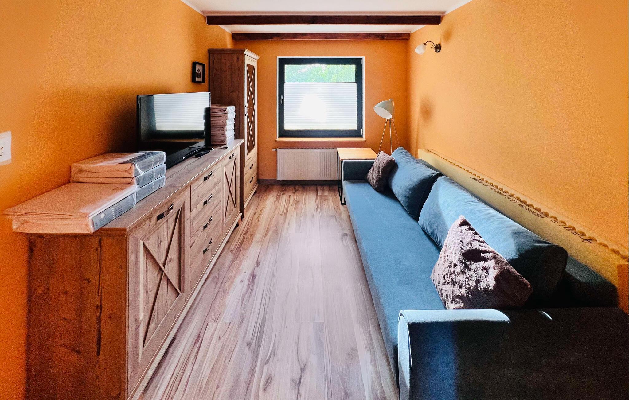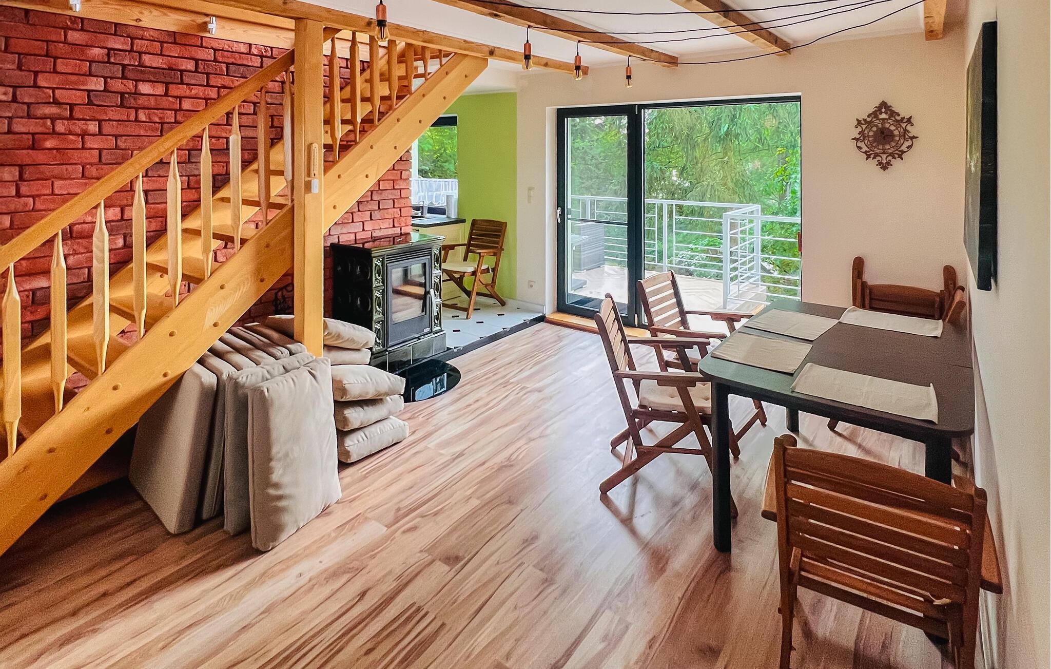 Willkommen in dem komfortablen und einladenden Haus, das Sie wenige Schritte vom See erwartet und Ihnen den idealen Rahmen für einen erholsamen Urlaub nahe der Natur bietet. Genießen Sie eine wunderbare Zeit in den ansprechenden Räumen, die geschmackvoll und individuell gestaltet sind. Freuen Sie sich auf gemütliche Abende mit gemeinsamen Mahlzeiten und einem Feuer im Kaminofen, nehmen Sie ein Wannenbad mit schöner Aussicht und machen Sie es sich abends auf dem einladenden Sofa bequem.
