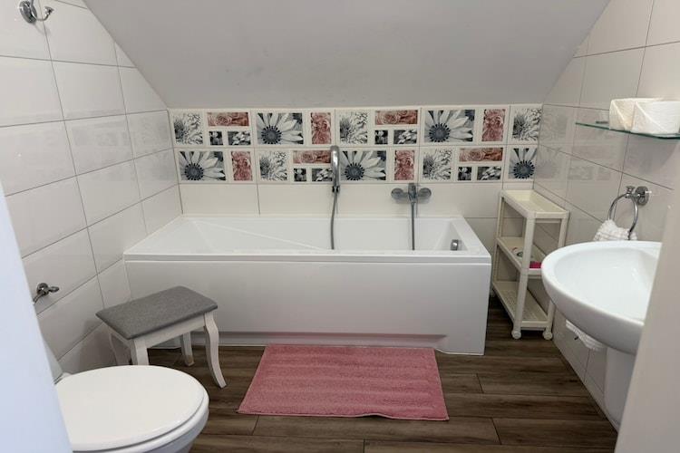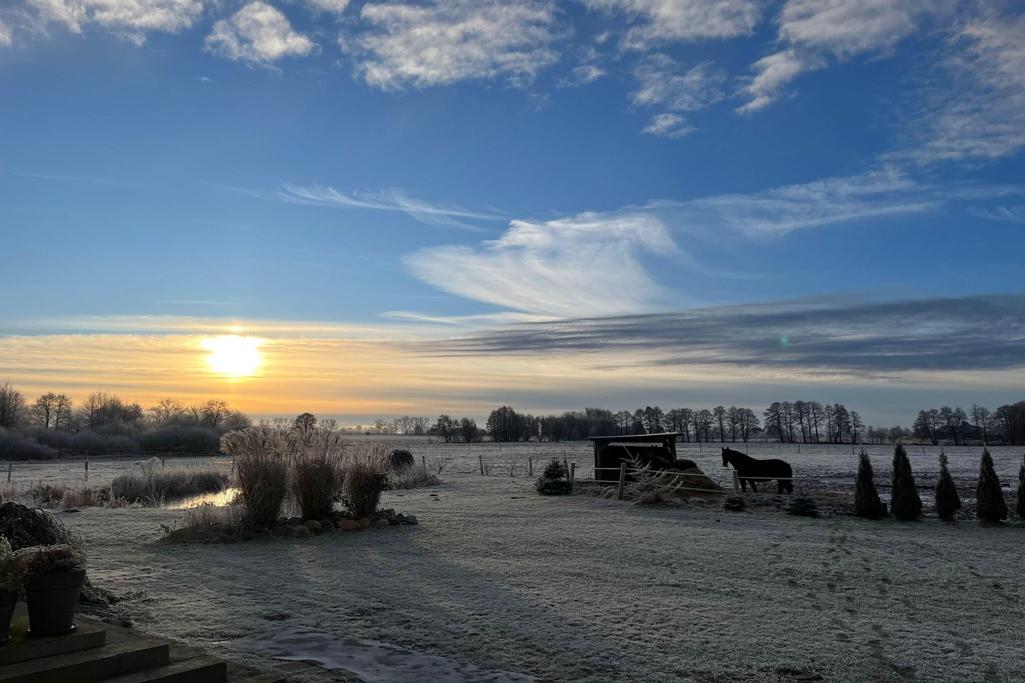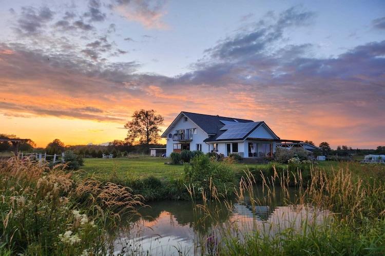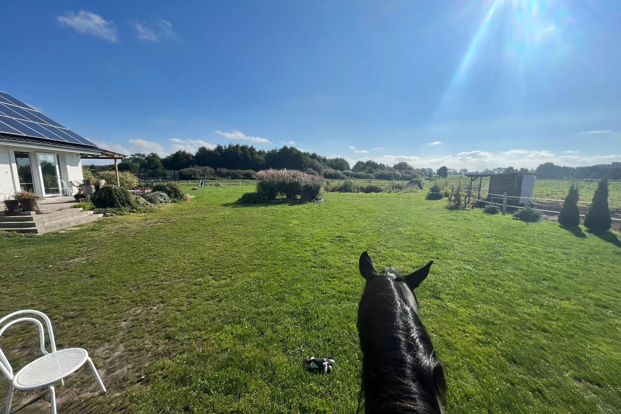 In der 1. Etage: (Kochnische(Esstisch, Wasserkocher, Kühl-/Gefrierkombination), Wohn-/Schlafzimmer(Doppelbett, TV, Sitzecke), Schlafzimmer(Einzelbett, Einzelbett), Badezimmer(Dusche, Waschbecken, Toilette), Badezimmer(Badewanne, Waschbecken, Toilette)) Pferdestall, Internet, Reiten, Balkon, Garten(Gemeinschaftliche Nutzung mit anderen Gästen, umzäunt, angelegt, 3 hm2), Gartenmöbel, Liegen, Grill, Parkplatz, Trampolin, Teich, Spielgeräte, Föhn, Schaukel