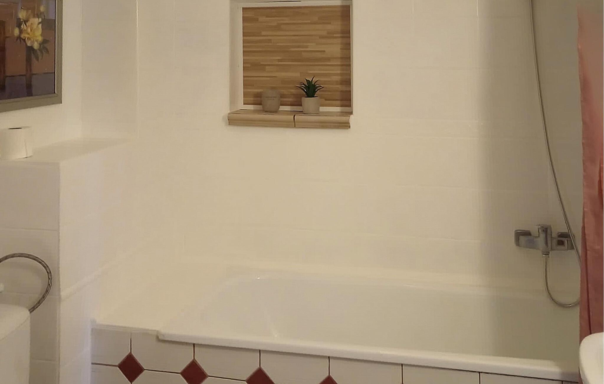 Badezimmer (nr. 1) - WC. Warmes und kaltes Wasser. Handdusche und Badewanne