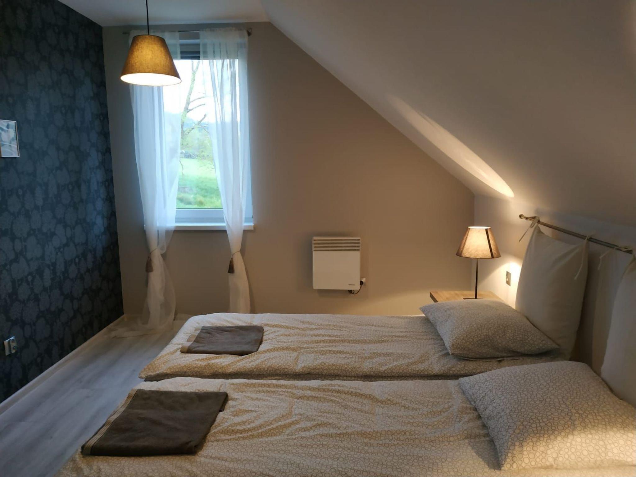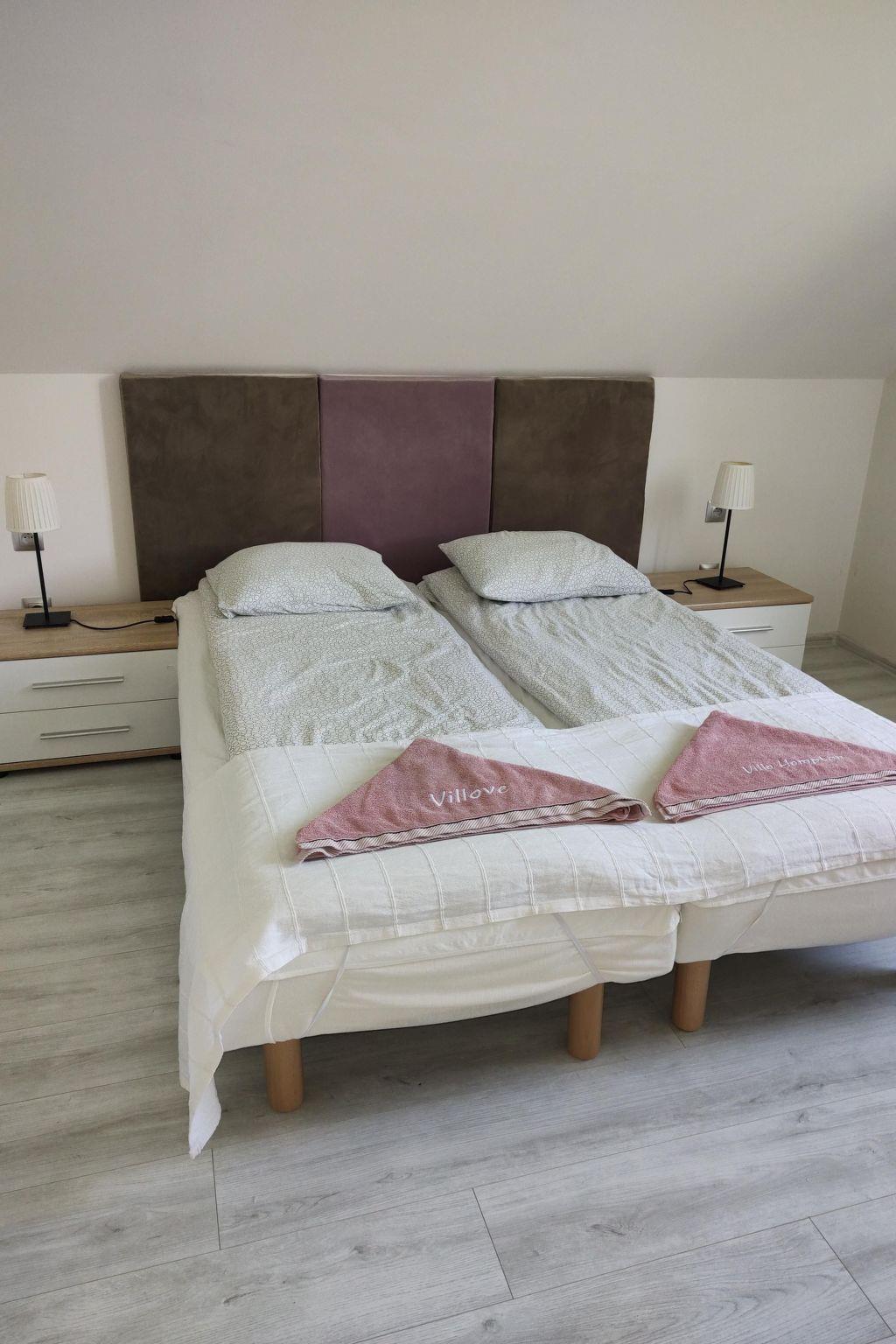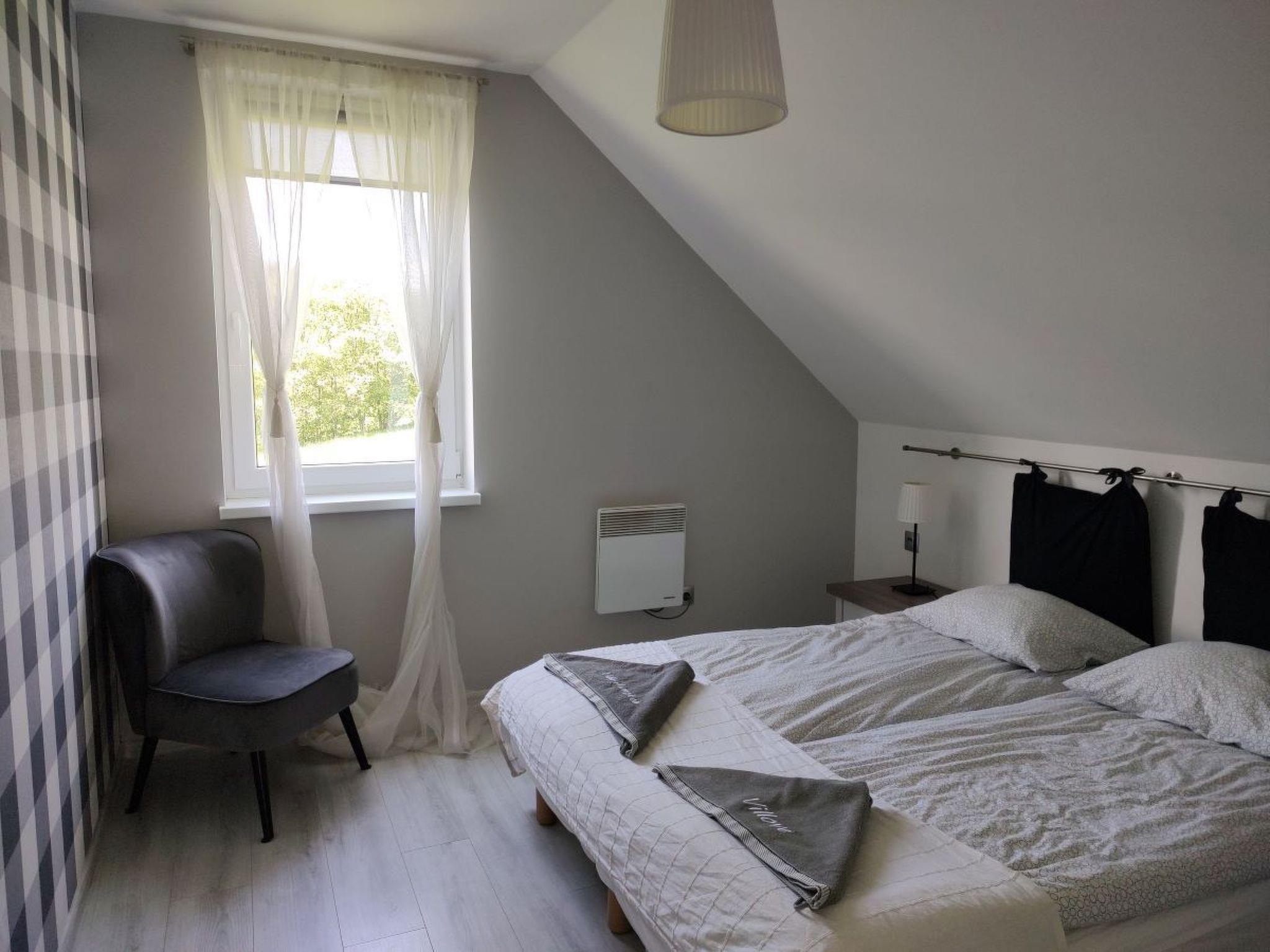 Sie wohnen auf insgesamt 100m² Wohnfläche und im Erdgeschoss steht Ihnen eine moderne und komplett ausgestattete Küche (10m²) zur Verfügung. Zu den Annehmlichkeiten zählen ein Kühlschrank mit Gefrierfach, Herd, Mikrowelle und Kaffeemaschine. Angrenzend liegt der gemütliche Wohnbereich mit einem großen Esstisch und gemütlichen Stühlen. Der Bereich mit Sofa und Kaminofen nimmt ungefähr 20m² ein. Zur Unterhaltung dienen ein LCD-Fernseher mit 40 internationalen Kanälen. Ein spezielles Musiksystem mit CD-Spieler rundet das Unterhaltungsprogramm ab. Eins der Schlafzimmer befindet sich auch auf dieser Etage. Sie schlafen in einem bequemen Doppelbett (180 x 200cm), welches man mit wenigen Handgriffen auch in zwei Einzelbetten (je 90 cm breit) verwandeln kann. Des Weiteren ist das Schlafzimmer mit einem Kleiderschrank, einer Kommode und zwei Nachttischen ausgestattet. Zudem liegt im Erdgeschoss noch ein kleines Badezimmer mit WC und Dusche. Im ersten Stock liegen die anderen drei Schlafzimmer und ein Badezimmer mit Dusche. Im ersten Schlafzimmer mit Doppelbett (180 x 200cm) gibt es auch genug Stauraum für Ihre Kleidung. Hier steht auch ein Tisch und Stühle für Kinder. Im daneben liegenden Zimmer ist auch ein Doppelbett (180 x 200cm) vorhanden, welches in zwei Einzelbetten umfunktioniert werden kann. Zwei Kommoden, zwei Nachttische und ein Armsessel runden das Angebot ab. Im dritten Zimmer ist Platz für ein Babybett. Hier schlafen Sie ebenfalls in einem Doppelbett (190 x 200cm) und für Ihre Kleidung gibt es zwei Kommoden und auch zwei Nachttische.