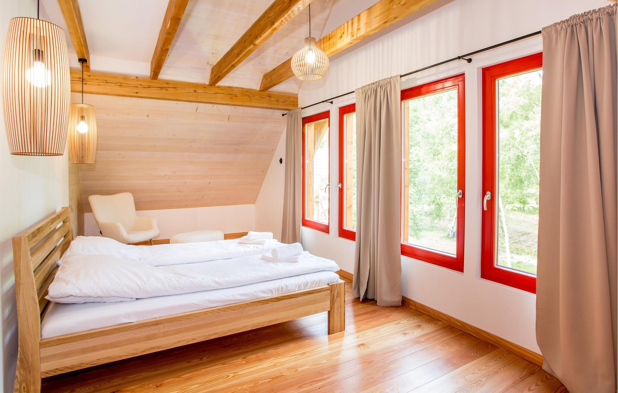 Willkommen in dem komfortablen und charmanten Fachwerkhaus, das Sie in naturschöner Umgebung zwischen Gardno See und Ostseestränden empfängt. Es befindet sich in einer Wohnanlage mit weiteren Ferienhäusern und lädt somit zu einem Urlaub mit befreundeten Familien oder mehreren Generationen ein. Die hellen Räume des Hauses, die geschmackvolle Einrichtung und das wohnliche Ambiente auf zwei Etagen machen Ihren Urlaub zum Erfolg. Ob beim gemeinsamen Essen, einem vergnüglichen Spielenachmittag oder beim Entspannen auf dem Sofa, hier können Sie die gemeinsame Zeit in vollen Zügen genießen.