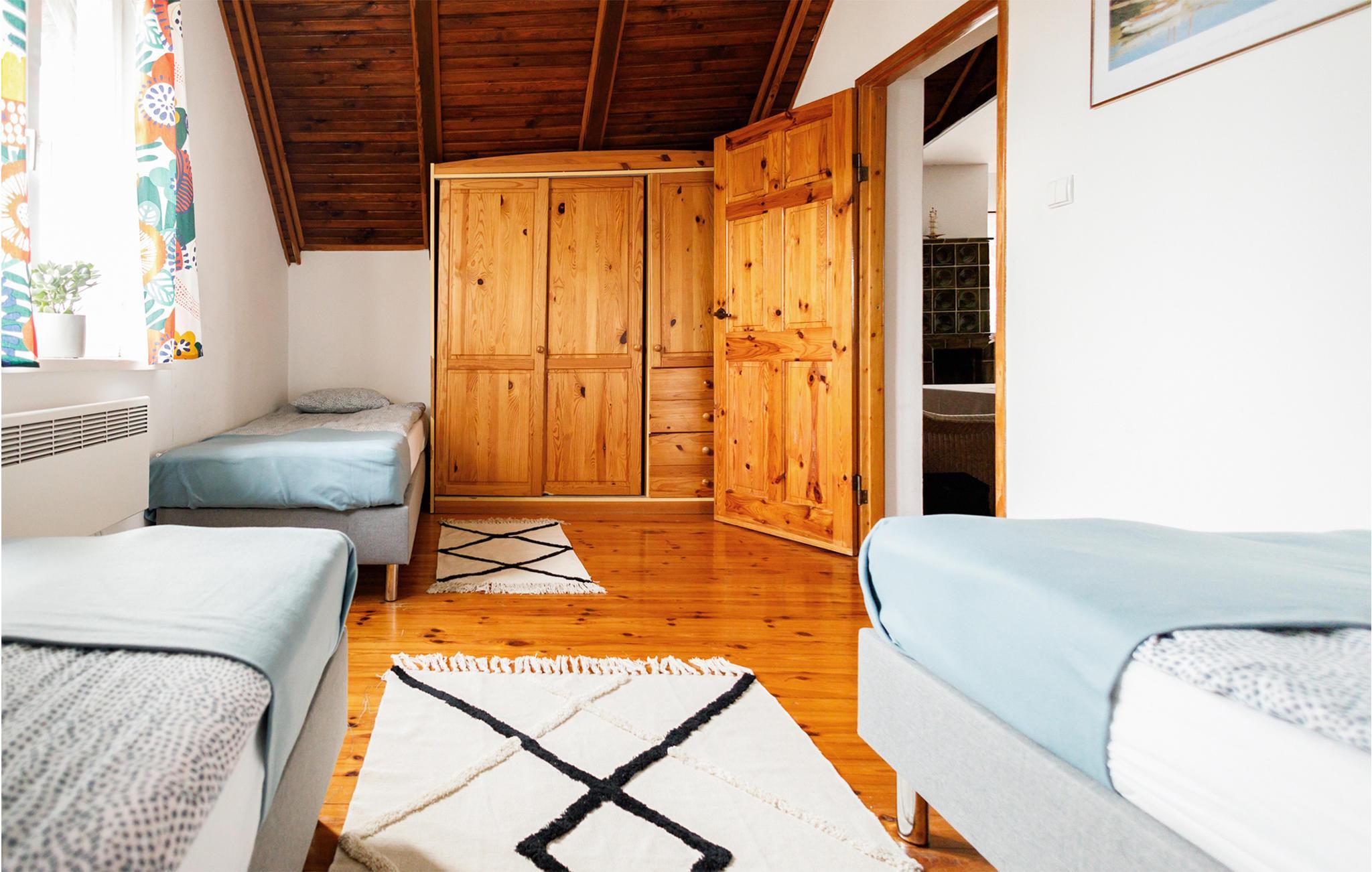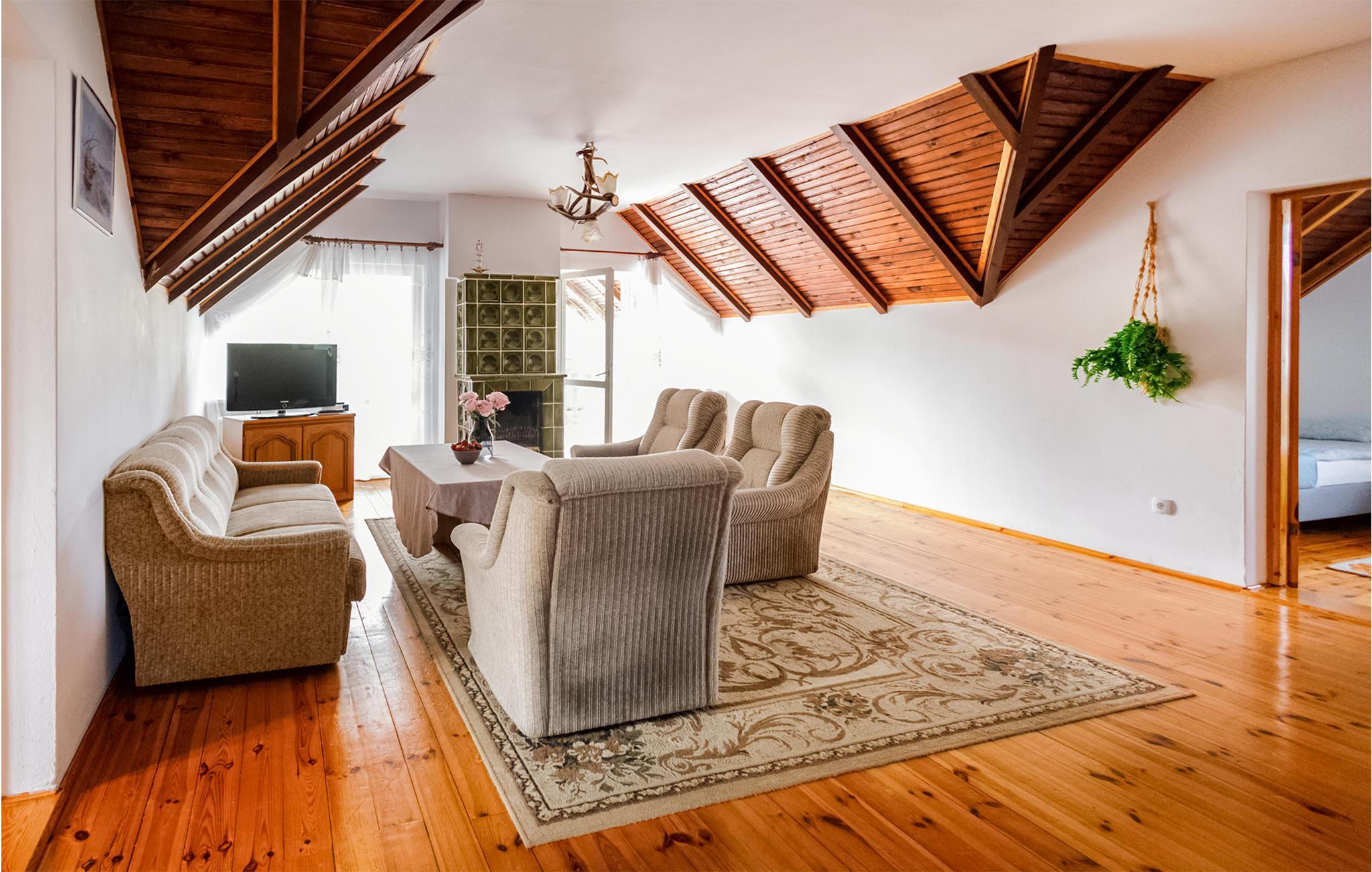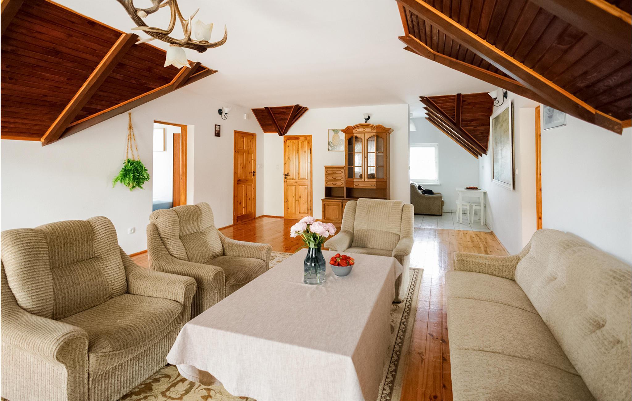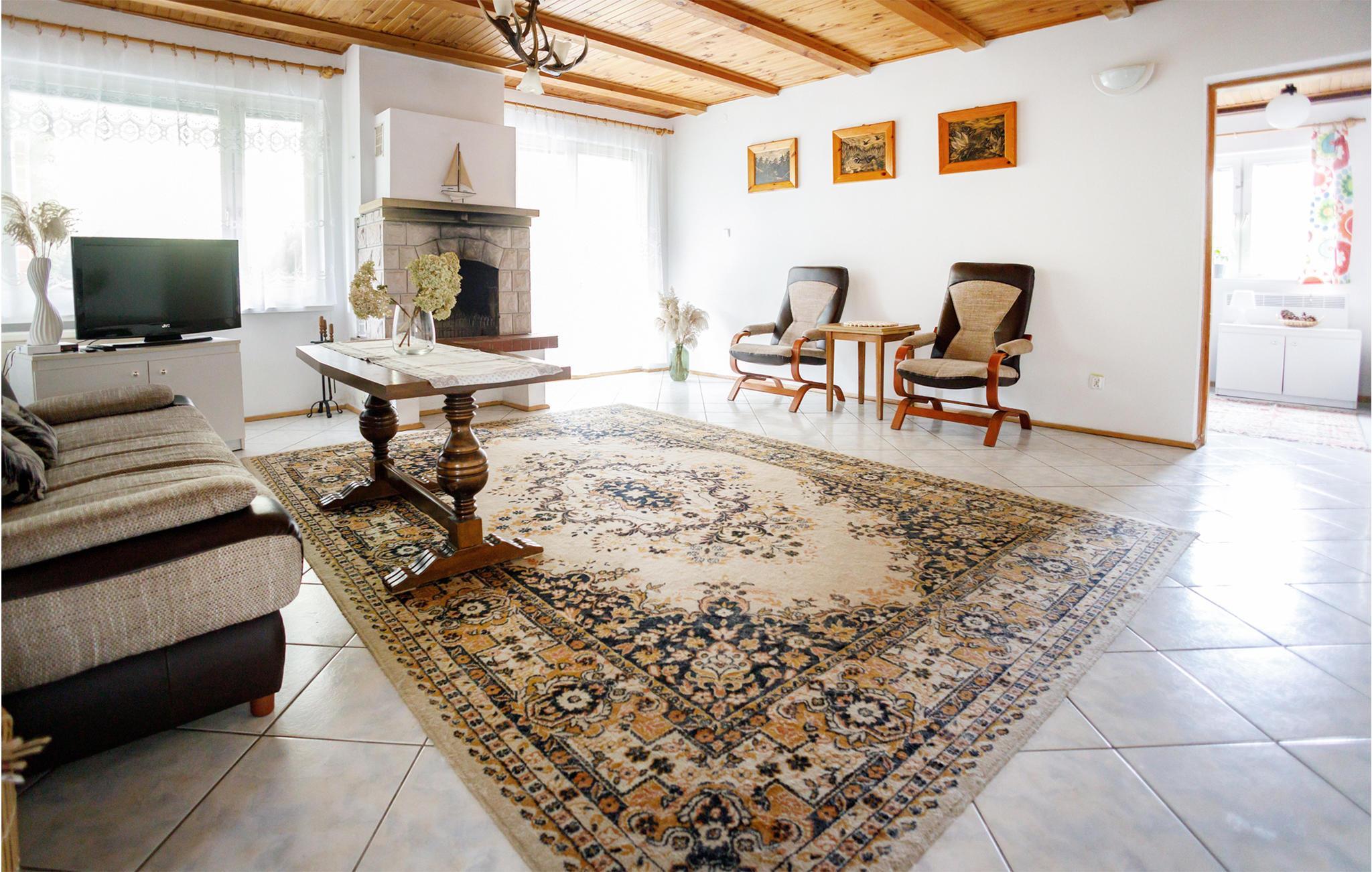 Dieses schöne Ferienhaus besteht aus zwei unabhängigen Wohnungen. Jede Wohnung besitzt einen eigenen Kamin. Es ist ideal für zwei Familien oder eine Freundesgruppe geeignet. Im Erdgeschoss ist eine Sauna, die von den Gästen genutzt werden kann. Das Ferienhaus ist praktisch und solide eingerichtet. Empfehlenswert sind viele Rad- und Wanderwege in der Umgebung. Es ist perfekt Ort für Aktivliebhaber.