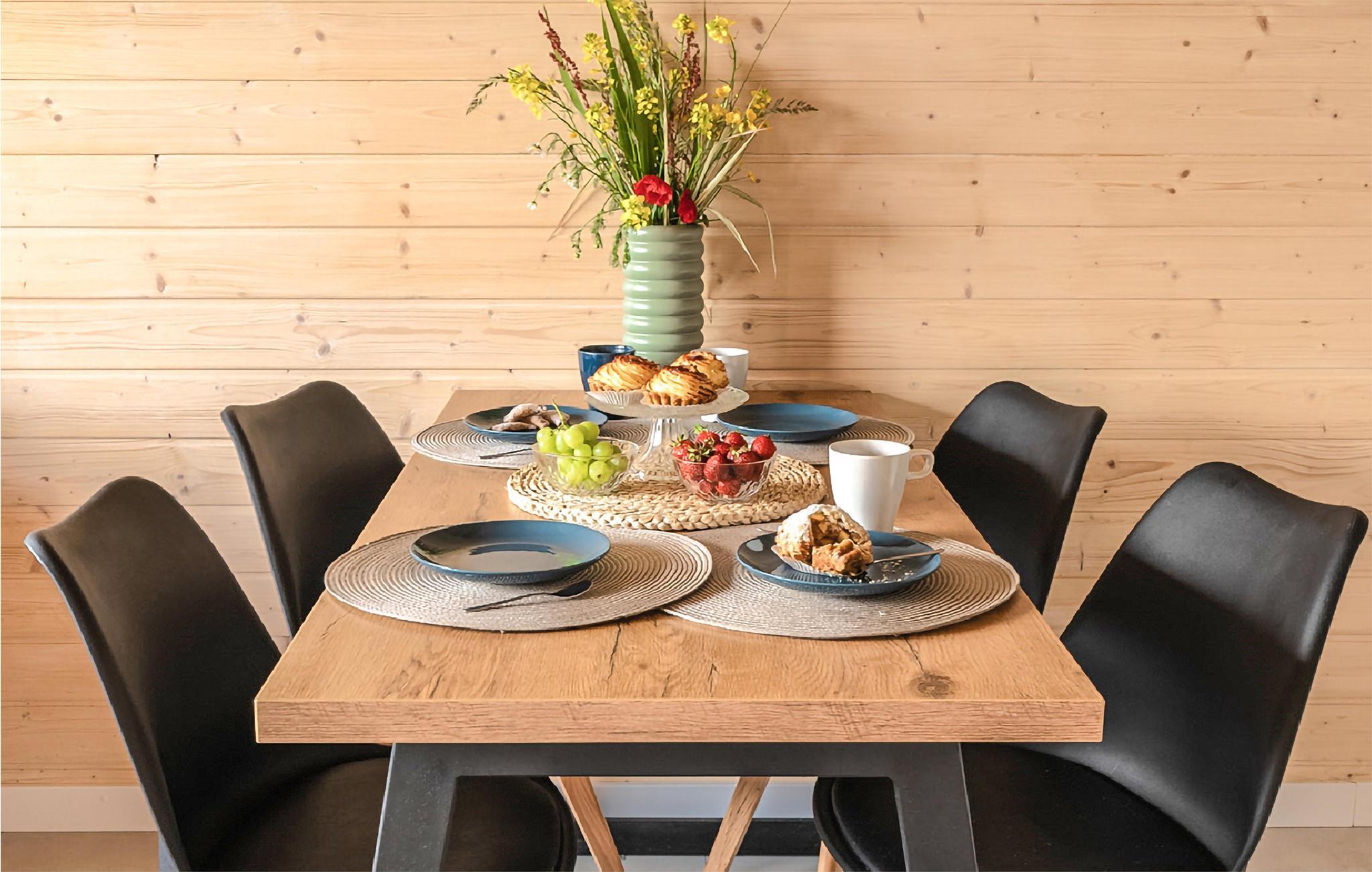 Freuen Sie sich auf Ihren Urlaub in diesem modernen und ansprechenden Ferienhaus mit moderner Holzoptik. Hier haben Sie die richtige Unterkunft gefunden, um sich von Ihrem Alltag zu erholen und zur Ruhe zu kommen. Während das Erdgeschoss das Kochen, Essen und Relaxen verbrindet, finden Sie im Obergeschoss die Schlafzimmer, in denen Sie zur Ruhe kommen können.