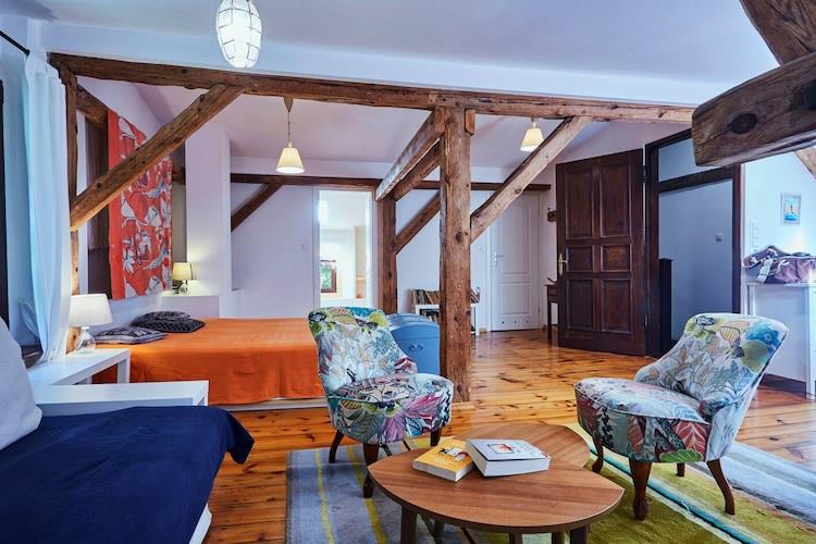 Ein charmantes Feriendorf inmitten eines wilden Waldes, nahe dem Nationalpark Slowinski. Einzigartige Lage im malerischen Dorf Sasino (einem kaschubischen Dorf in der Nähe von Leba und dem Leuchtturm Stilo). Der Strand ist 5 km entfernt und über einen Pfad durch einen Pinienwald erreichbar. Dieses komfortable, geräumige zweistöckige Ferienhaus bietet ein privates, umzäuntes Grundstück und direkten Zugang zu Pool, Sauna und Whirlpool. Im Erdgeschoss befinden sich ein großzügiges Wohnzimmer (mit TV und Sofa), eine voll ausgestattete Küche mit Essbereich, zwei Schlafzimmer (eines mit TV und Kamin) sowie ein Badezimmer mit Dusche. Im Obergeschoss befinden sich zwei weitere Schlafzimmer: Das erste ist groß und verfügt über ein Doppelbett, ein Schlafsofa und einen separaten Entspannungsbereich mit Spielekonsole (sowie eine zusätzliche Schlafnische mit zwei Einzelbetten). Das zweite Schlafzimmer ist kleiner und mit zwei Einzelbetten ausgestattet. Außerdem gibt es im Obergeschoss ein zweites Badezimmer mit Badewanne. Zentralheizung (Gas) und ein Kamin im Schlafzimmer im Erdgeschoss (mit Wärmeverteilung in die anderen Räume). Fußbodenheizung ist in beiden Badezimmern vorhanden. WLAN steht zur Verfügung. Das großzügige, umzäunte Gelände bietet einen Sommerpool (geöffnet vom 15. Mai bis 15. Oktober, unbeheizt), eine Sauna (gegen Gebühr von 500 PLN pro Woche), einen Whirlpool (gegen Gebühr von 500 PLN pro Woche) und einen Gartenpavillon mit Grillkamin. Ein besonderes Highlight ist der private Kletterpark (drei Gurte sind vorhanden, im Preis inbegriffen). Außerdem gibt es einen Spielplatz und Parkplatz. Gästen stehen 2 Fahrräder und Nordic-Walking-Stöcke zur Verfügung. Im Preis inbegriffen: Wasser, Internet, Parkplatz, Pool (15. Mai – 15. Oktober), 2 Fahrräder, Kinderbett, Hochstuhl, Willkommenskorb und die Nutzung des Kletterparks. Der Strand bei Sasino wird selbst im Sommer nur von wenigen Touristen besucht, sodass Ruhe und Frieden garantiert sind.