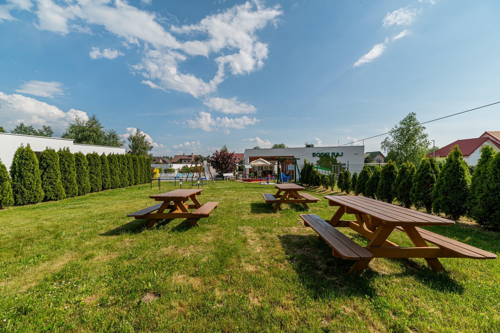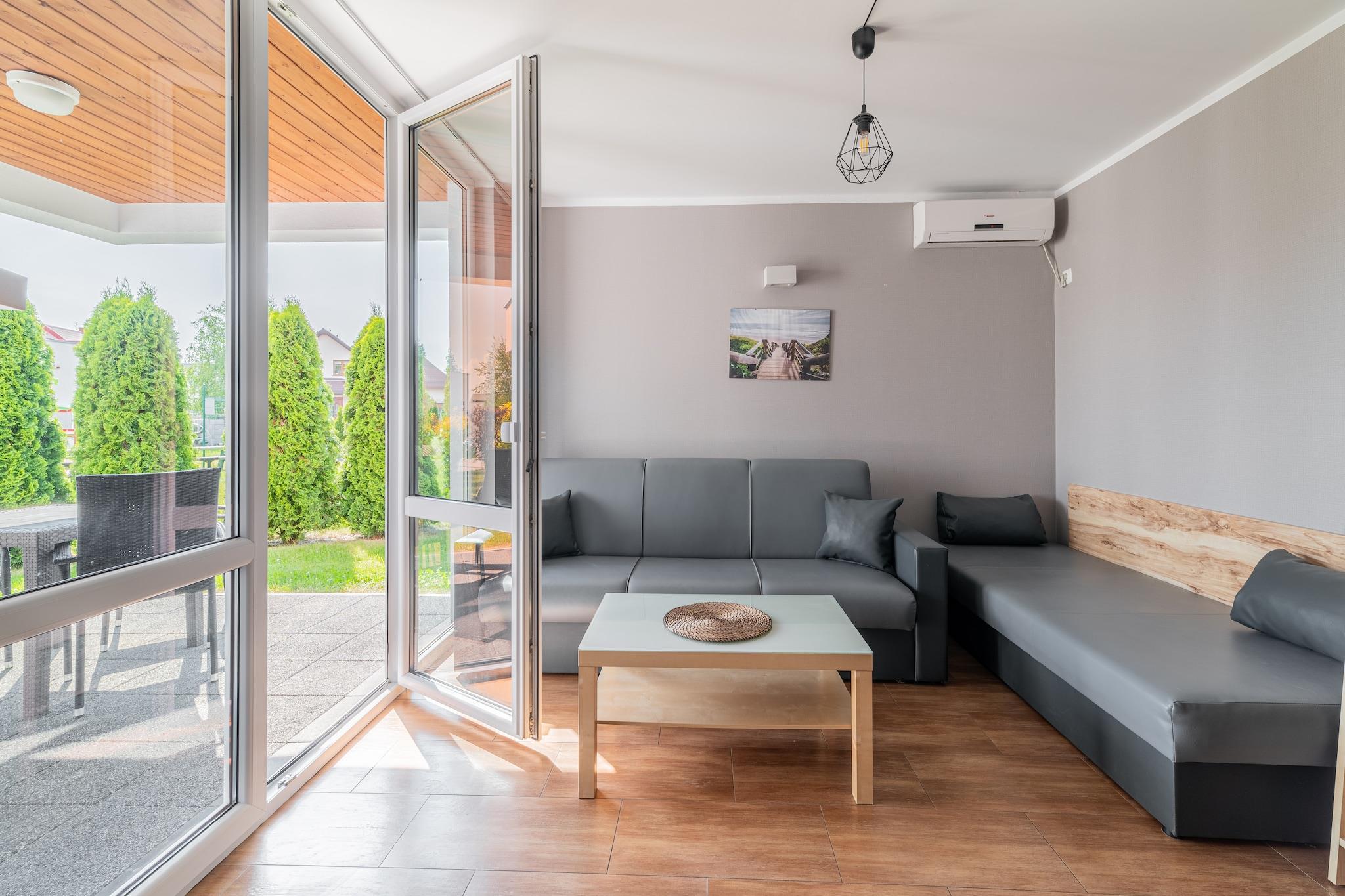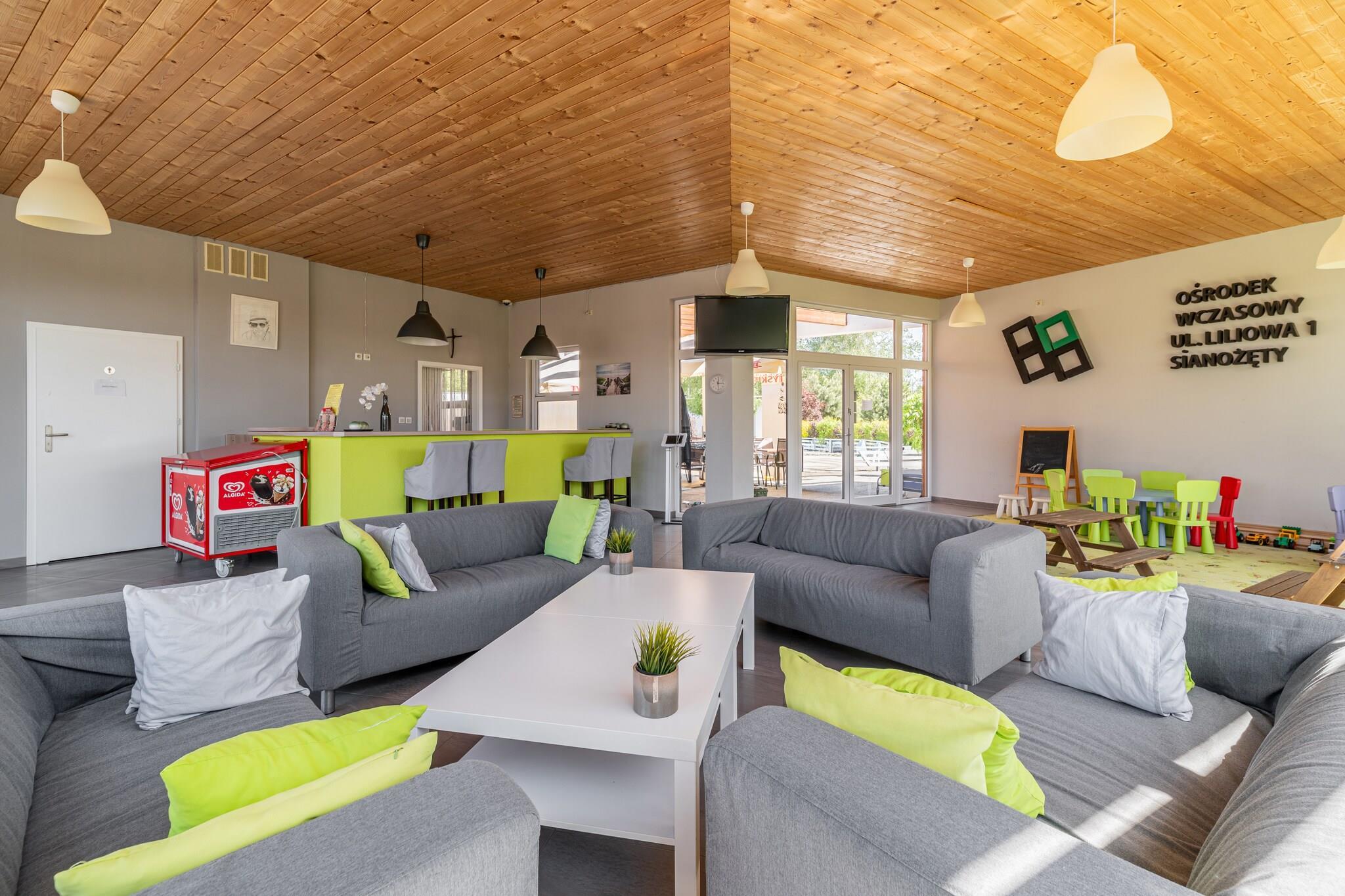Familienferienresort 200 m vom Strand entfernt. Das umzäunte Grundstück verfügt neben komfortablen Backsteinhäusern auch über eine komplette Infrastruktur, die perfekte Entspannung ermöglicht. Die einstöckigen Ferienhäuser bestehen aus einem Wohnzimmer mit TV, einer Küchenzeile, einem Schlafzimmer und einem Badezimmer mit Dusche. Vom Wohn- und Schlafzimmer gibt es einen Ausgang zur überdachten Terrasse, wo sich ein Gartenmöbelset befindet. Es gibt auch mögliche Schlafplätze im Wohnzimmer (2-Sitzer-Sofa + Einzelbett). Die Cottages verfügen über eine Klimaanlage (Kühlung und Heizung). WLAN ist verfügbar. Grillmöglichkeiten sind vorhanden. Die Waschmaschine ist öffentlich zugänglich (Service vor Ort zusätzlich zu bezahlen). Die größte Attraktion des Zentrums ist das beheizte Sommerschwimmbad. Außerdem gibt es einen Fahrradverleih, ein Café und einen Sportplatz (Badminton, Volleyball, Fußball). Es gibt auch einen Parkplatz (1 Parkplatz/Haus im Preis inbegriffen; weitere Parkplätze werden zusätzlich bezahlt). Für die jüngsten Gäste gibt es einen Spielplatz (Trampolin, Sandkasten, Rutsche, Schaukeln). Im Preis des Aufenthalts sind enthalten: Bettwäsche, Stromverbrauch (maximal 7 kWh/Tag) und Wasser, Klimaanlage, Endreinigung, Internet, Parkplatz (1 Platz), Babybett und Hochstuhl (nach vorheriger Reservierung). Bei einem Stromverbrauch über 7 kWh/Tag fallen zusätzlich 0,7 EUR/1 kWh an. Sianozety ist ein kleiner Ferienort, etwa 10 km von Kolobrzeg entfernt, in unmittelbarer Nähe eines anderen Badeortes – Ustronie Morskie. Sianozety liegt direkt an einem breiten Sandstrand. Goldener Sand und sanfter Zugang zum Meer laden Urlauber zum Sonnenbaden und Meer ein. Im benachbarten Ustronie Morskie gibt es auch einen 100 Meter langen Spaziersteg.