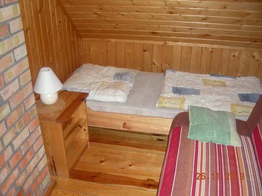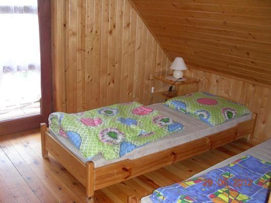 Ein schönes und stilvoll eingerichtetes Holzhaus, in der Nähe des Sees und des Waldes. Es gibt 6 Betten im Haus. Im Erdgeschoss gibt es ein Wohnzimmer mit Kamin (32" TV), voll ausgestattete Küchenzeile (Kühlschrank, Gasherd mit Backofen, Geschirr), Dusche/WC. Im ersten Stock gibt es 2 separate Schlafzimmer und einen Balkon mit Blick auf den See. Das Grundstück hat ein Gartenhaus, Grill, Schaukel, Tisch, Sandkasten, Kinderspielplatz, Trampoline, Volleyballplatz, Feuerstelle, Garten, Teich mit Steg, Parkplatz. Sehr schöner Strand mit Steg, gute Möglichkeiten zum Schwimmen und Angeln. Zur Verfügung der Gäste: Boote, Kanus, Fahrräder. Mahlzeiten sind fakultativ (Frühstück, Mittagessen, Abendessen). Lokale Produkte wie Schinken, Schweinefilet, Speck, Wurst, Truthahn können vor Ort gekauft werden. Fisch kann auf Anfrage geräuchert werden. Zalakowo ist 70 km von Gdansk, 40 km von Koscierzyna, 30 km von Kartuzy und 8 km von Sierakowice entfernt. Leba - 55 km.