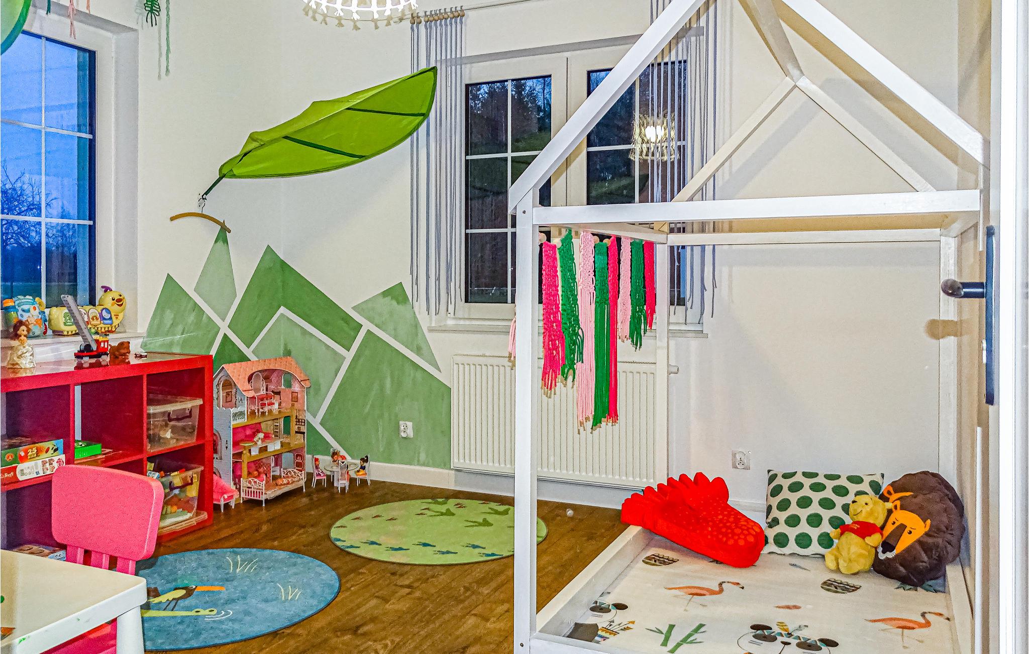 Das Anwesen befindet sich auf einem umzäunten Grundstück, auf dem Sie viel Platz zum Entspannen und Aktivitäten wie Grillen, Volleyball, Badminton und andere finden. Entspannen Sie in der Gartensauna mit Terrasse mit Blick auf den See oder nutzen Sie den Privatstrand mit Pier zum Schwimmen und für Wassersport.