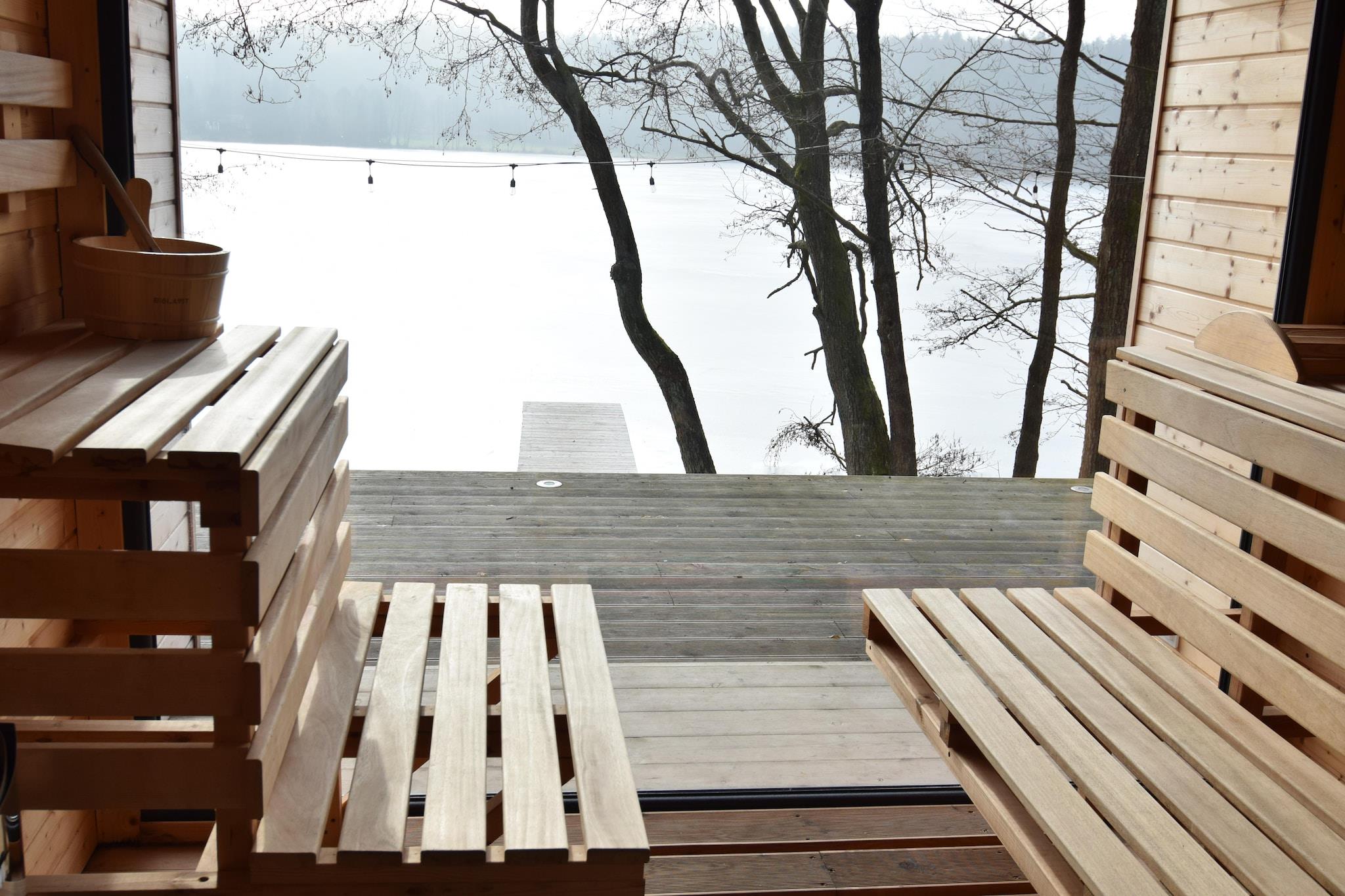 Ein kleines Feriendorf, eingebettet in den malerischen Kaschubischen Landschaftspark, zwischen den beiden bezaubernden Seen Buk und Kamionka. Direkt am Ufer des Kamionka gelegen, bietet dieses komfortable Doppelhaus seinen Gästen eine außergewöhnliche Unterkunft in einer Oase der Ruhe. Es befindet sich auf einem gepflegten, teilweise umzäunten Grundstück und erstreckt sich über zwei Etagen. Im Erdgeschoss befinden sich ein geräumiges Wohnzimmer (mit Fernseher, Kamin, großem Esstisch und Doppelschlafsofa), eine gut ausgestattete Küche (mit Geschirrspüler, Waschmaschine, Kaffeemaschine und Mikrowelle mit Backofenfunktion) sowie ein Gäste-WC. Im Obergeschoss befinden sich drei Schlafzimmer (jeweils mit Fernseher, zwei davon mit Balkon) und ein Badezimmer mit Dusche. Elektrische Heizung und ein Kamin sind vorhanden (Holz ist im Preis inbegriffen). WLAN steht zur Verfügung. Die überdachte Terrasse mit Gartenmöbeln und Liegestühlen bietet einen malerischen Blick auf den See. Grillmöglichkeiten sind ebenfalls vorhanden. Die Einzigartigkeit dieses Ortes wird durch eine große, ganzjährig geöffnete Privatsauna mit Seeblick und einen Whirlpool mit Jacuzzi im Garten noch verstärkt. Die Nutzung dieses Wellnessbereichs ist im Preis inbegriffen. Das außergewöhnlich gepflegte Anwesen (zur exklusiven Nutzung durch Gäste) bietet sichere Parkplätze, einen Spielplatz, einen Kamin und einen Gartenpavillon. Am Privatstrand befindet sich außerdem ein Angelsteg. Im Preis enthalten sind: Bettwäsche, Handtücher, Strom, Wasser, Heizung, Brennholz, Sauna, Whirlpool mit Jacuzzi, Internet, Parkplatz und Endreinigung. Ein Hochstuhl und ein Kinderbett sind auf Anfrage erhältlich (Reservierung erforderlich). Die Lage bietet den perfekten Rahmen, um dem Alltag zu entfliehen und in die Ruhe der Natur einzutauchen. Gäste haben direkten Zugang zum kristallklaren Wasser des Kamionka-Sees. Angeln, Schwimmen, Radfahren und Wandern sind hier möglich.