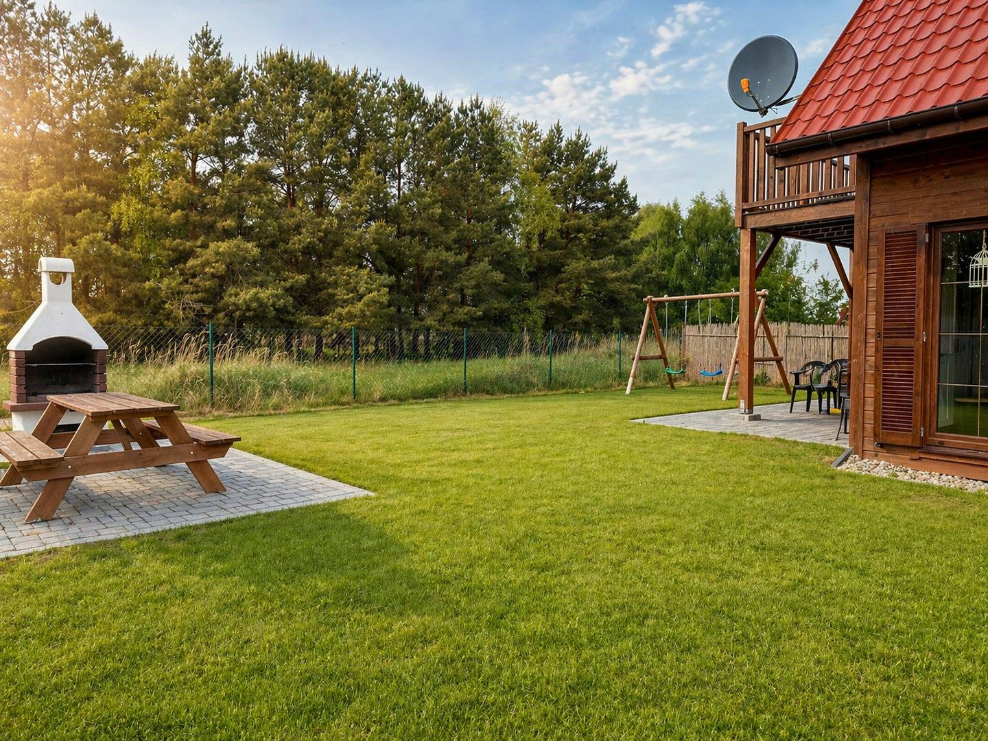 Dieses großzügige Ferienhaus in Kopice am Stettiner Haff vereint Ruhe, Natur und durchdachten Komfort. Ideal für Familien, Freunde oder den Urlaub mit Hund – mit viel Platz drinnen wie draußen und einem freien Blick ins Grüne.
