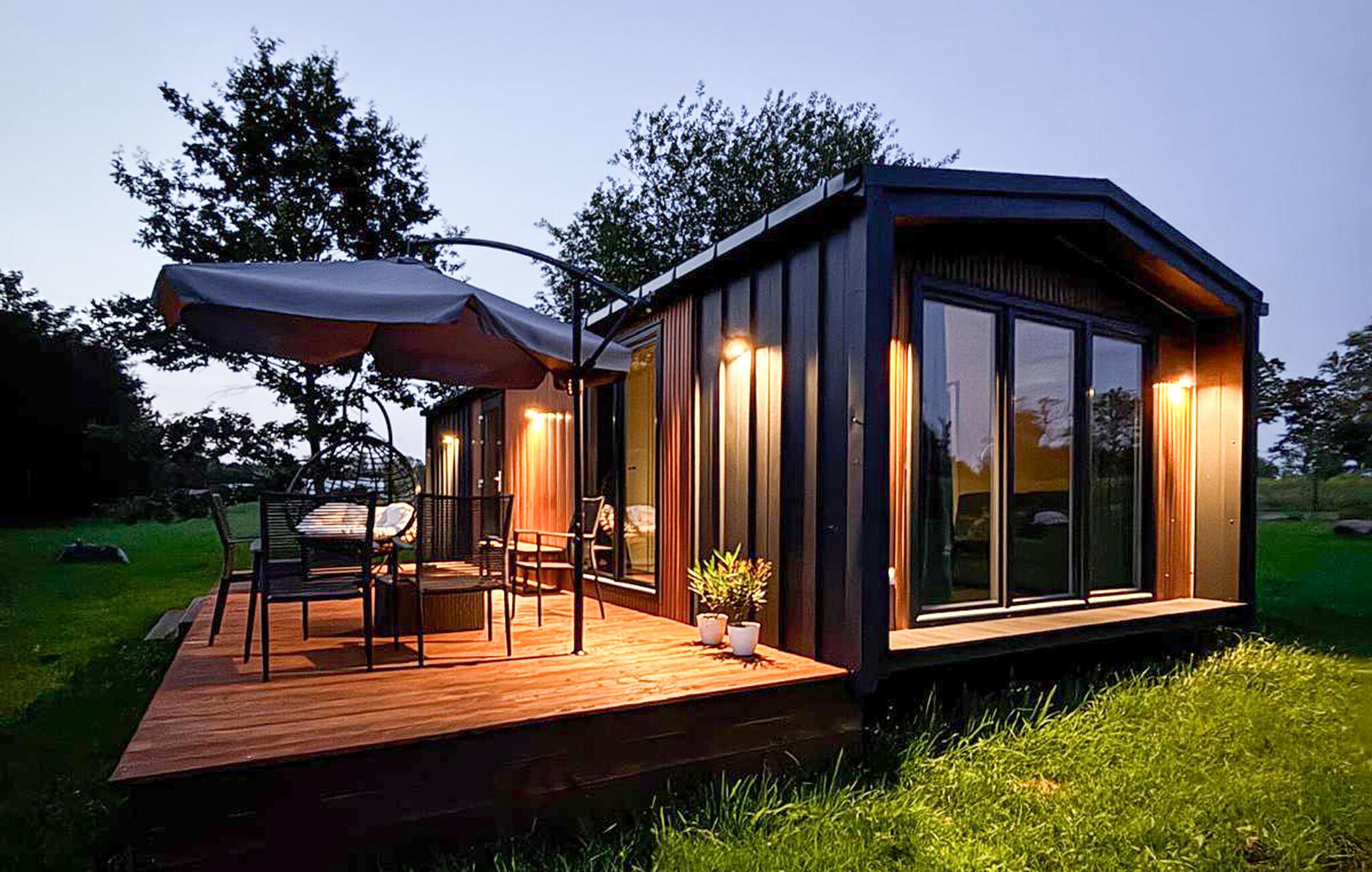 Genießen Sie entspannte Tage in diesem stilvollen Ferienhaus, das modernen Komfort mit naturnaher Lage verbindet. Ob als Paar oder mit Familie – hier finden Sie die ideale Mischung aus Erholung, Aktivität und Gemütlichkeit. Betreten Sie den hellen Wohnbereich und fühlen Sie sich sofort wohl. Nutzen Sie die kleine Küche, um gemeinsame Mahlzeiten zuzubereiten, und speisen Sie am Esstisch mit Blick in den grünen Garten. Machen Sie es sich auf dem Sofa gemütlich und genießen Sie die ruhige Atmosphäre.