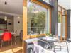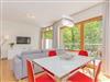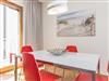 Die Sitzecke ist mit der Küchenzeile durch einen Esstisch mit 4 Stühlen verbunden.