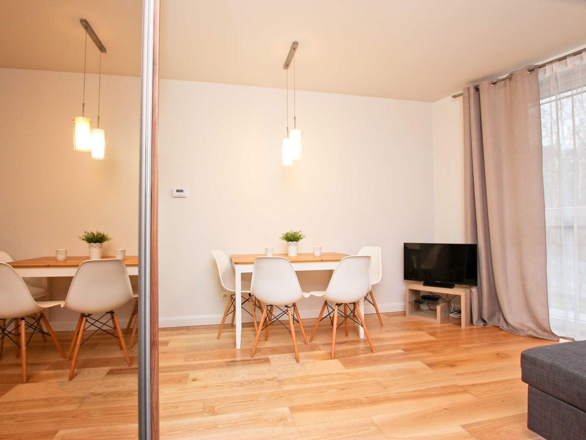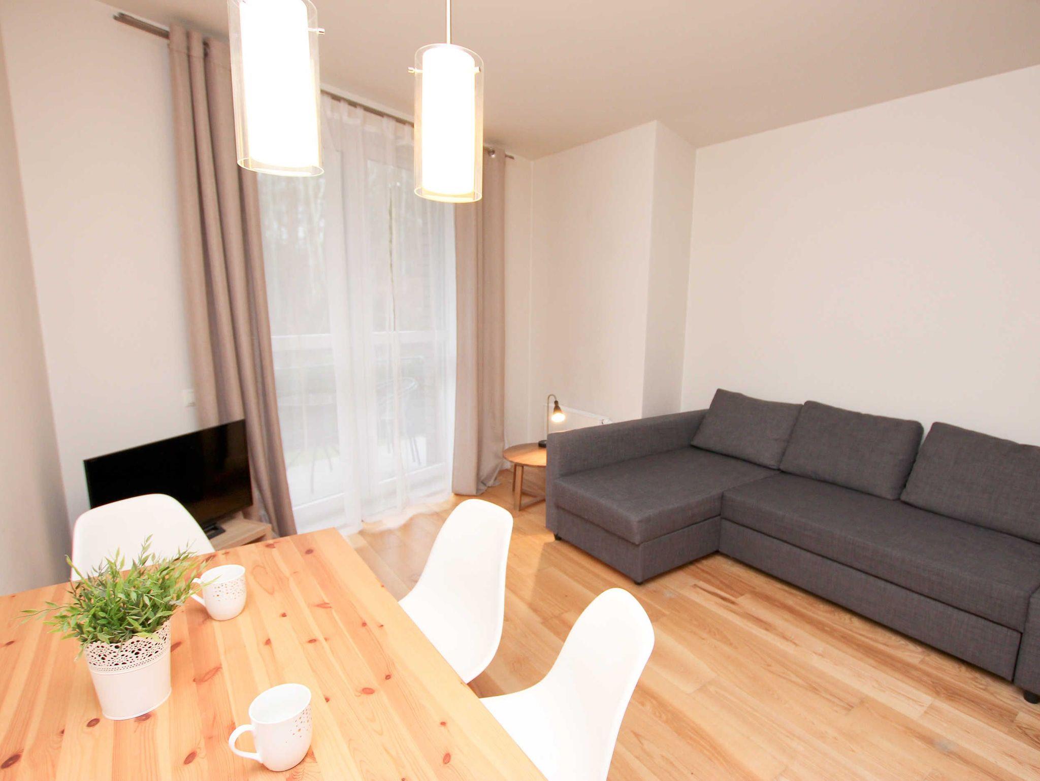 Eine komfortable Ein-Zimmer Ferienwohnung mit Balkon gelegen im westlichsten Teil der Stadt, an der Baltycka Straße. Das moderne, 4-stöckige Gebäude befindet sich in einer ruhigen, grünen Umgebung am Rande des Waldes, etwa 200 Meter vom Strand und 500 m vom Grenzübergang Swinemünde -Ahlbeck entfernt, abseits von der lebhaften Promenade.