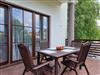 Schlafzimmer 2: Doppelbett (160x200 cm), Einzelschlafsofa, Kleiderschrank, Tisch mit 2 Stühlen, Zugang zum Balkon.