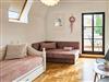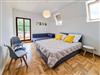 Schlafzimmer 4: Doppelbett, Einzelschlafsofa, Tisch mit 2 Stühlen, Regal.