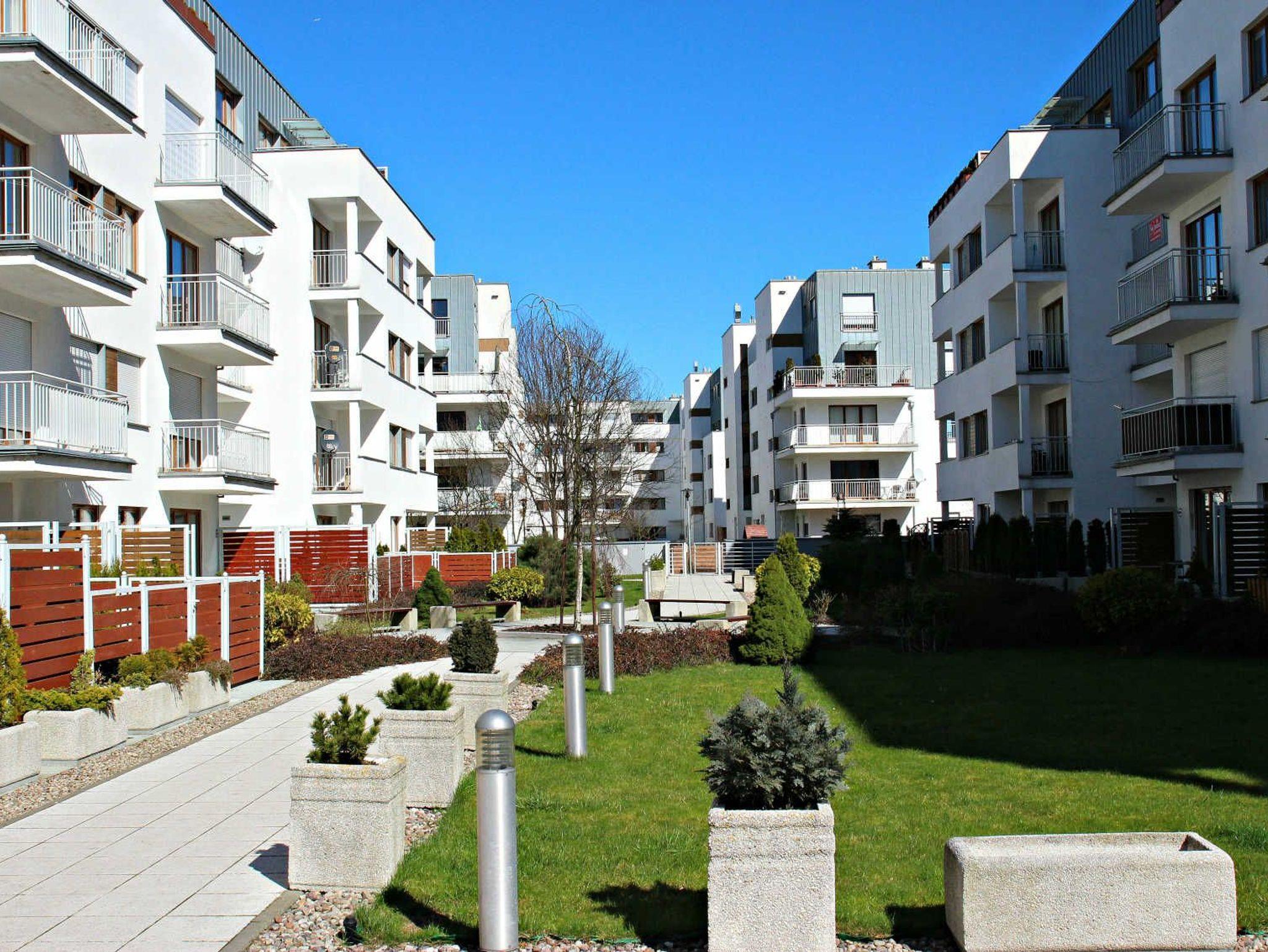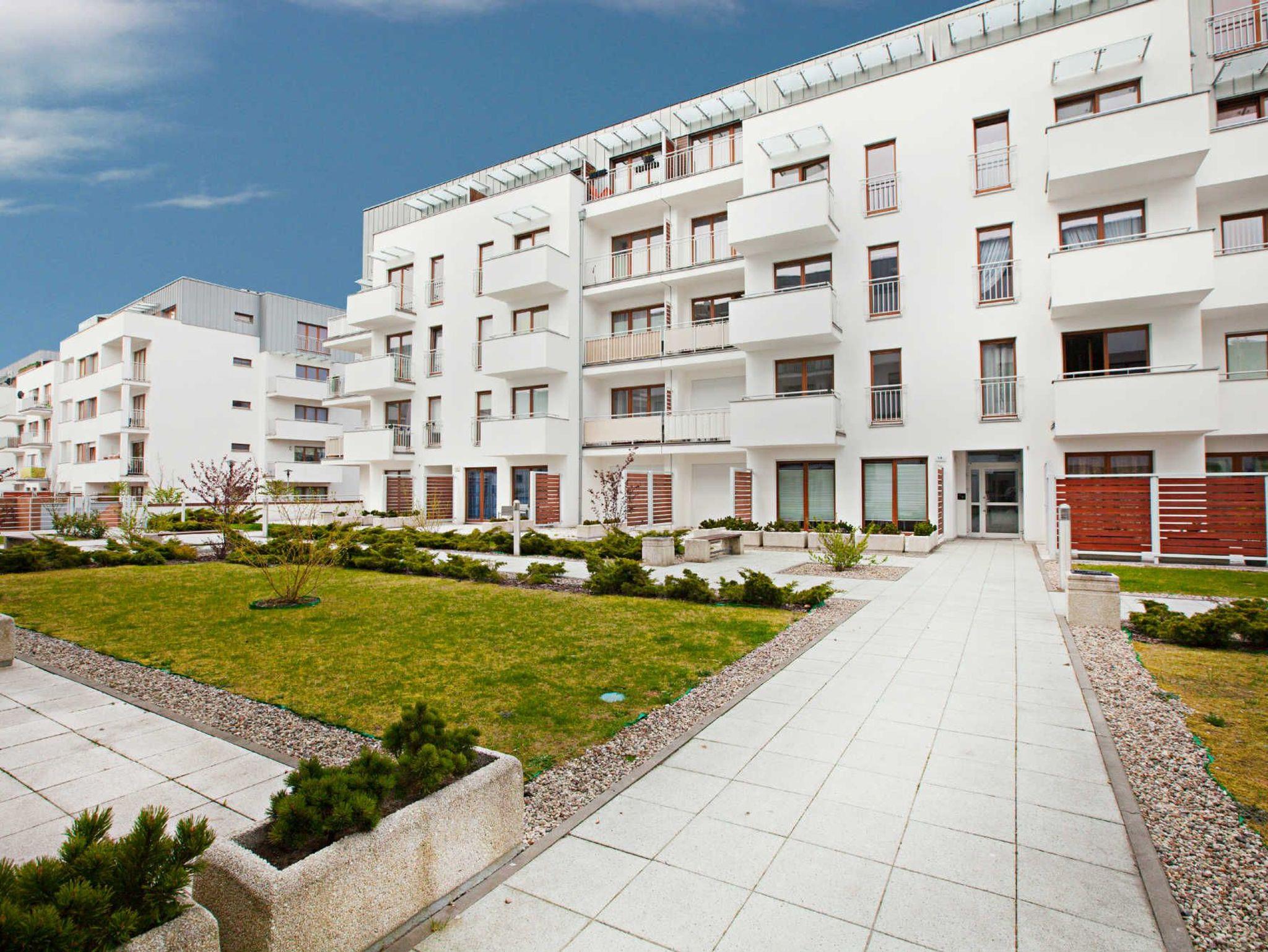 Das Gebäude, in dem sich die Ferienwohnung befindet, liegt in der Wohnsiedlung PLATAN, welche ein modernes und ästhetisches Wohnkomplex ist. Das Gebäude verfügt über einen Aufzug. Auf dem Grundstücksgelände sind viele Grünflächen und Kinderspielplätze, die von Gästen genutzt werden können.