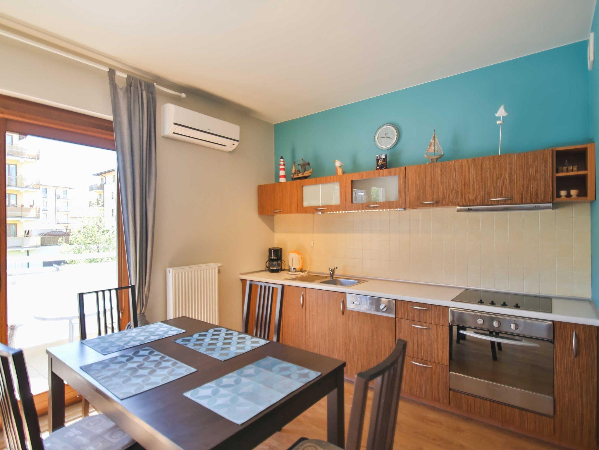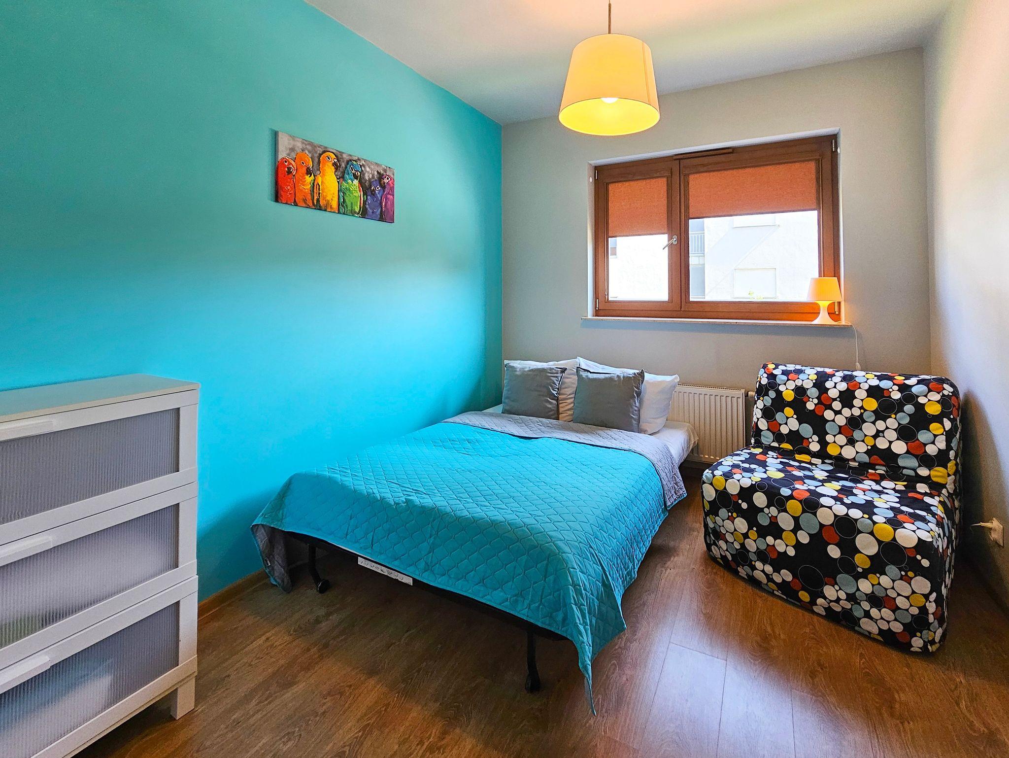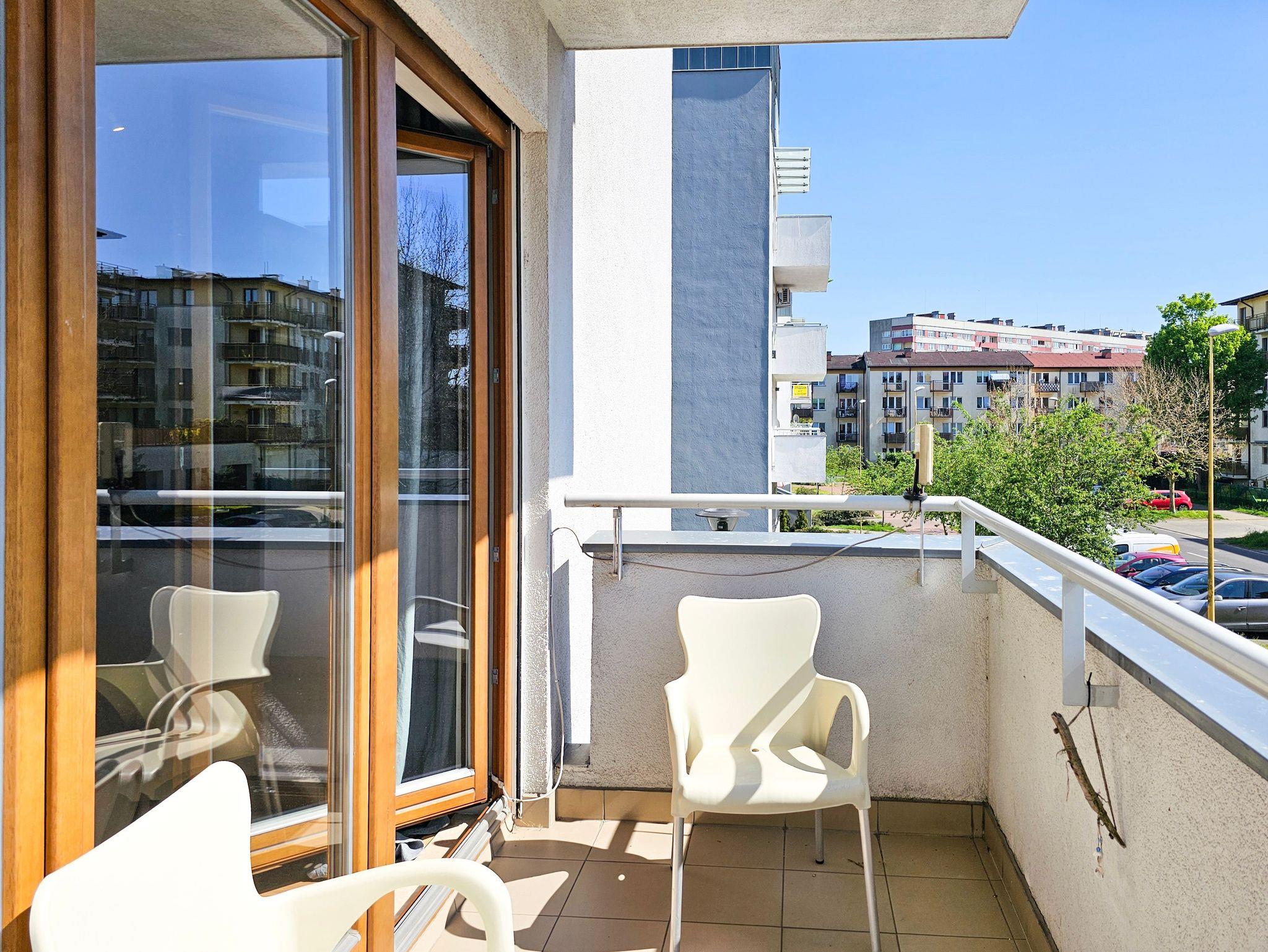 Das Gebäude, in dem sich die Wohnung befindet, befindet sich in der Wohnsiedlung Platan, einem modernen Wohnkomplex. In der Nähe gibt es Einkaufsmöglichkeiten, einen Radweg und einen großen, modernen Spielplatz.