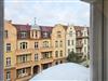 Im Wohnzimmer befinden sich ein Smart-TV (kein Zugang zu standardmäßigen Fernsehsendern), ein Tisch mit vier Stühlen, ein Couchtisch und ein ausziehbares Sofa (160x200 cm). Die Wohnzimmerfenster sind nach Nordosten ausgerichtet und blicken auf die Hodu-Pruskiego-Straße mit ihrer historischen Bebauung.