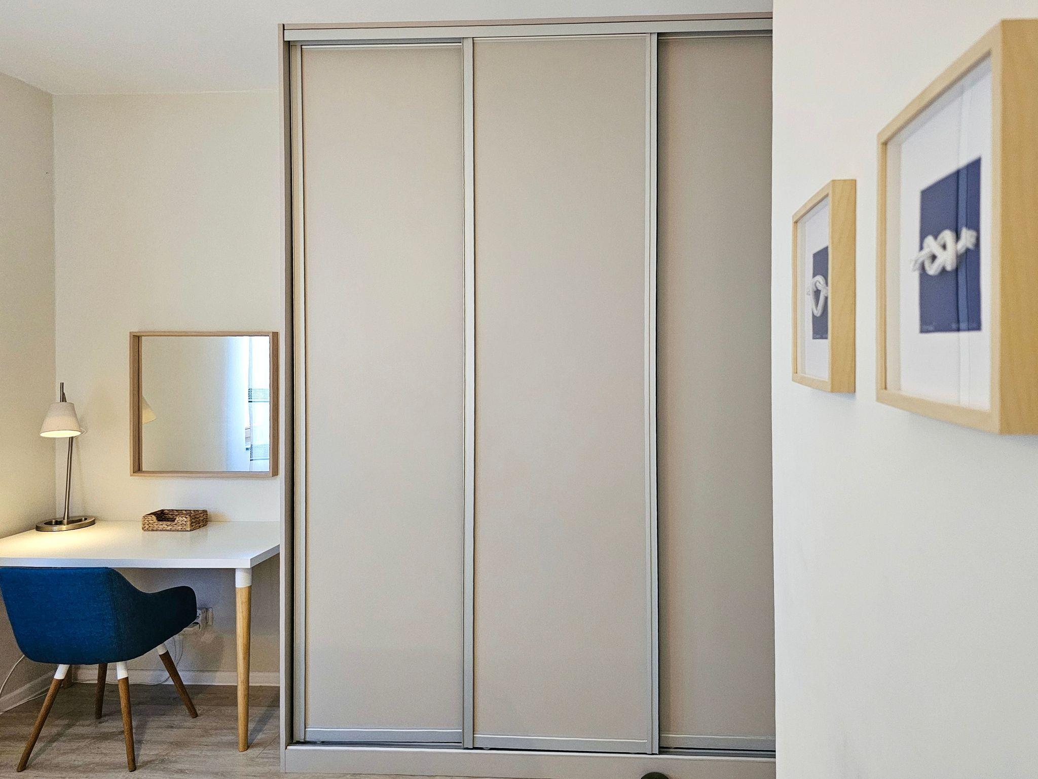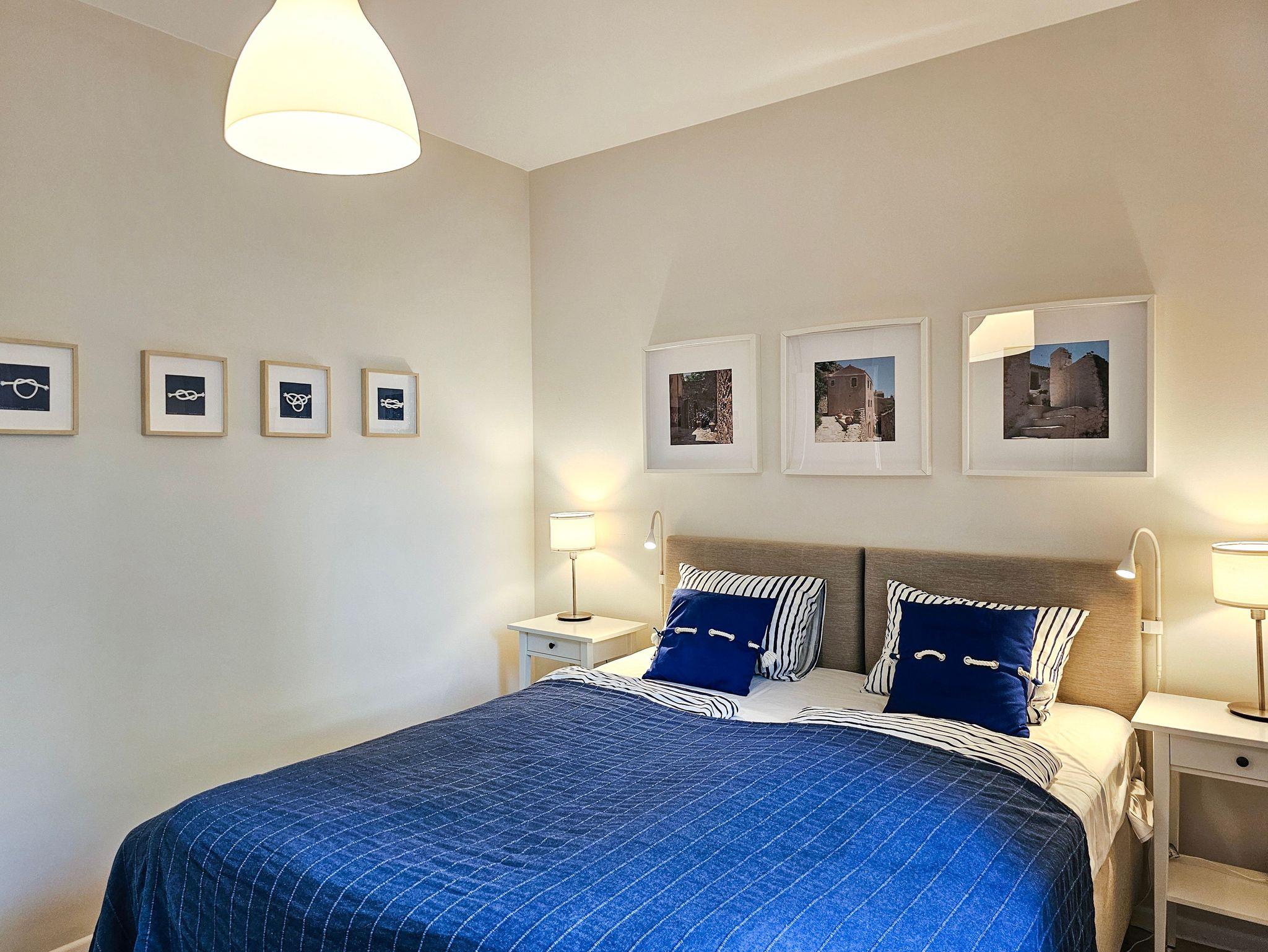 Sie besteht aus zwei Schlafzimmern und einem geräumigen Wohnzimmer mit Terrasse. Die Fenster der beiden Schlafzimmer sind nach Norden zum Innenhof gerichtet. Jedes Schlafzimmer ist mit einem Doppelbett, Kleiderschrank und einem Nachttisch mit Lampen ausgestattet, in einem der beiden befindet sich zusätzlich ein Frisiertisch.
