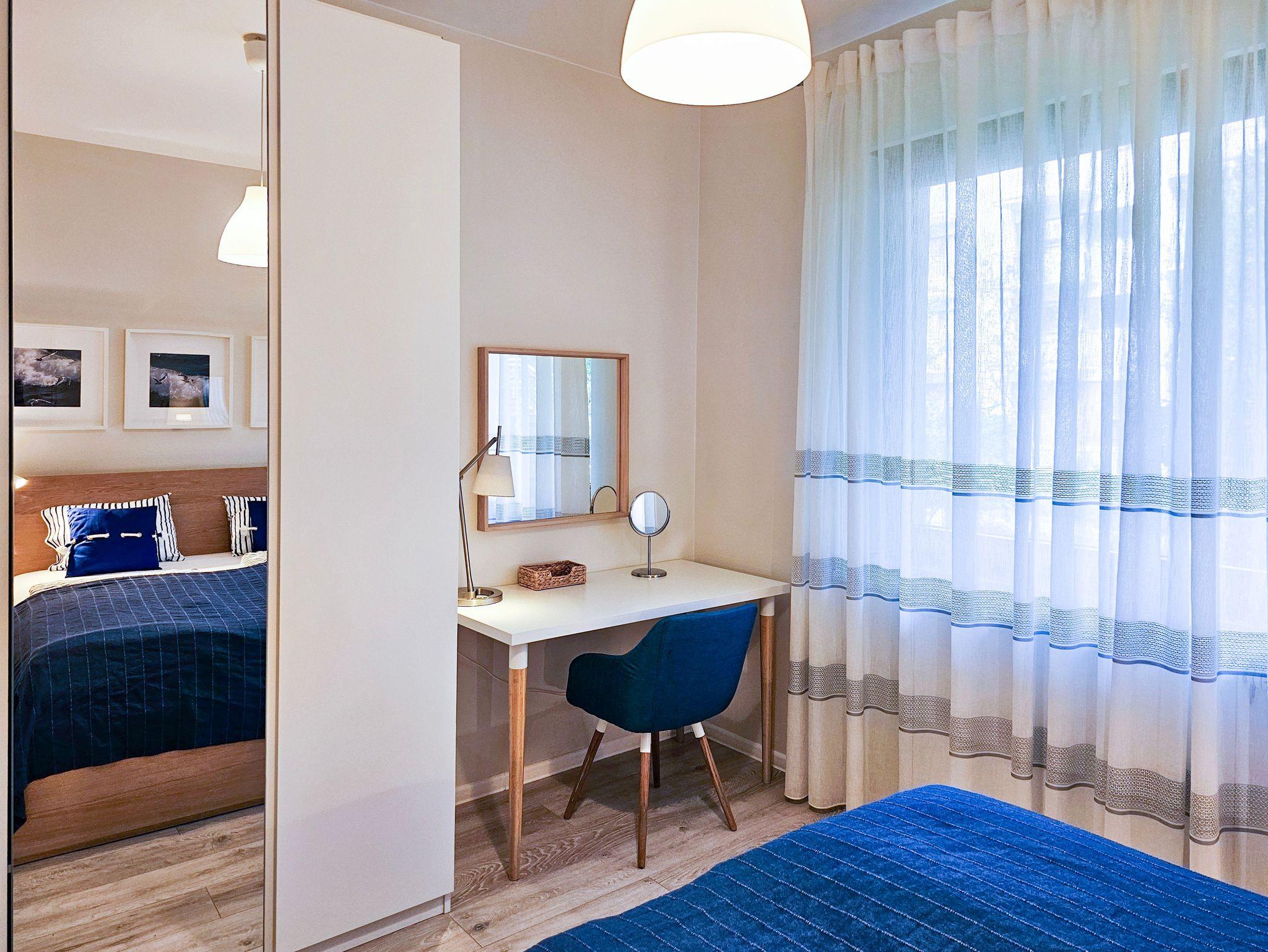 Die Ferienwohnung befindet sich im Wohnkomplex Rezydencja Sienkiewicza, im westlichen Teil des Kurviertels. Die Grüne, ruhige Umgebung, direkte Nähe zum Wald, eine kurze Entfernung zur Promenade und zum Strand (ca. 300 m) sind die Vorteile der Lage. In der Nähe gibt es ebenfalls einen kleinen Spielplatz für Kinder, Waldwanderwege, die Gesundheitspromenade, die Gradierwerke, einen Radweg entlang der 15km langen grenzüberschreitenden Promenade, die Swinemünde mit den Kaiserbädern auf der deutschen Seite der Insel Usedom (Ahlbeck, Heringsdorf, Bansin) verbindet.