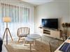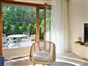 Die Fenster des Wohnzimmers und Terrasse sind nach Süden ausgerichtet, was den Gästen den Ausblick auf den in der Nähe liegenden Wald ermöglicht.