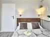 Beide Schlafzimmer haben 160cmx200cm große Doppelbetten, eine Kommode zur Aufbewahrung und Zugang zum gemeinsamen Balkon.