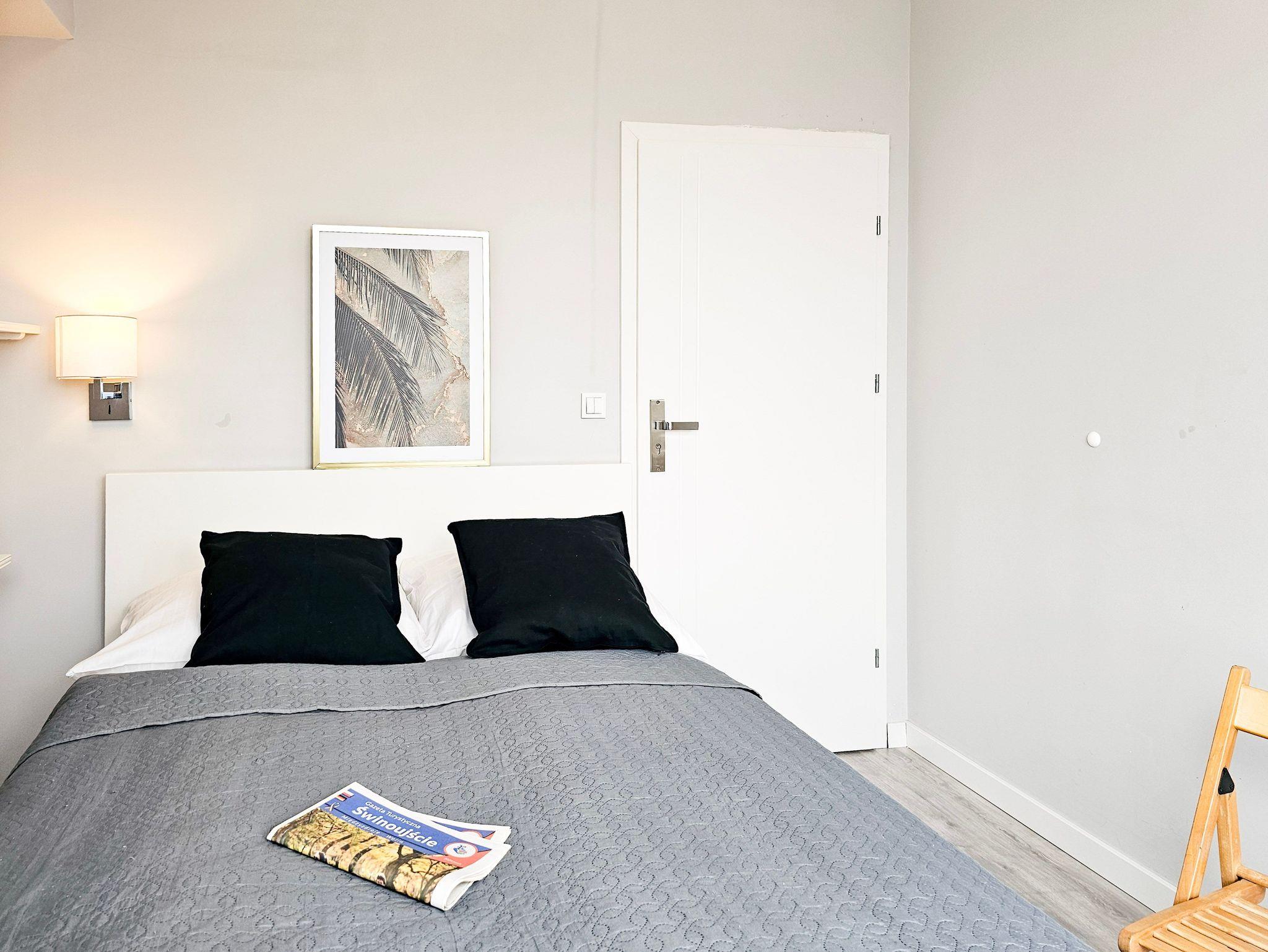 Die Wohnung von 73m2 befindet sich im 4. Stock des Gebäudes mit einem Aufzug ausgestattet. Sie besteht aus einem Wohnzimmer mit Kochnische, zwei Schlafzimmern und einem Badezimmer.