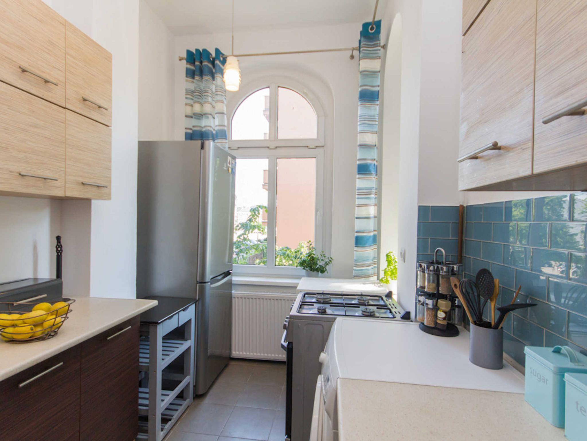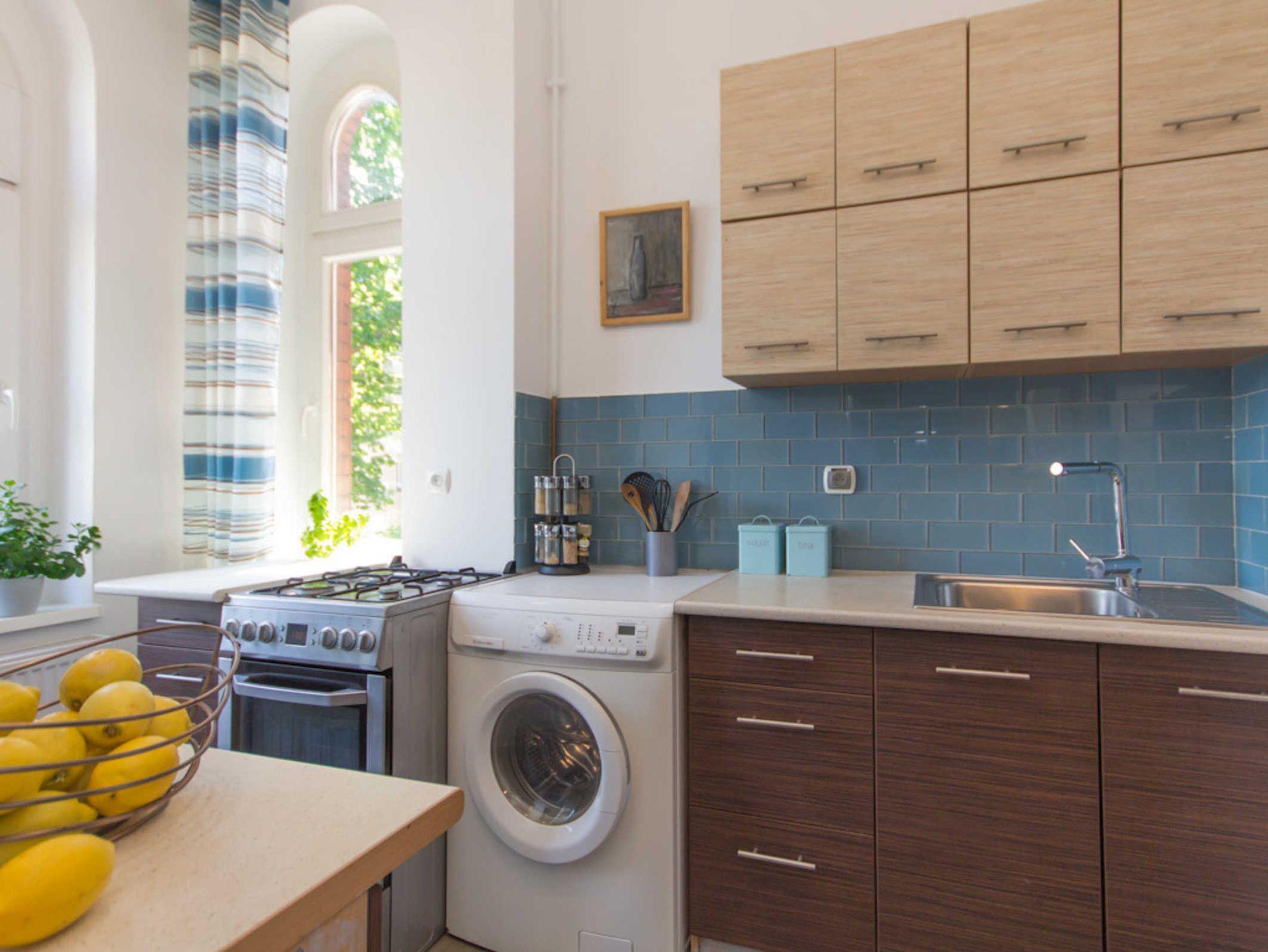 In der Küche gibt es auch eine automatische Waschmaschine.