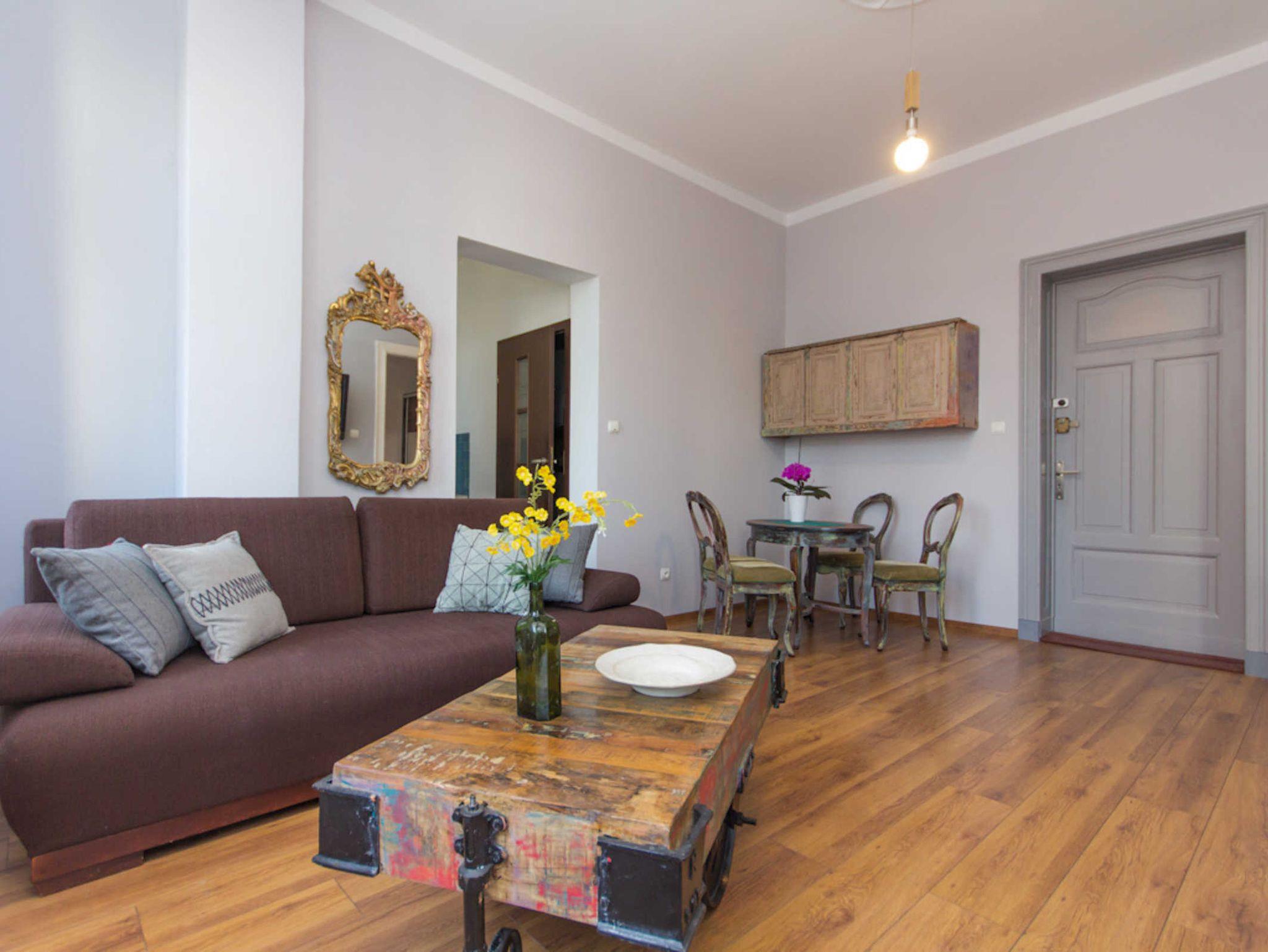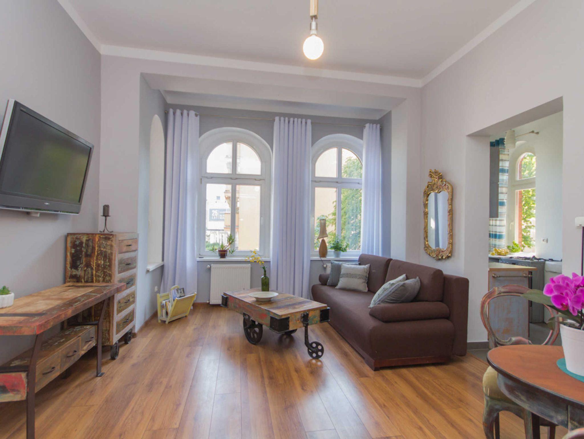 Die 54m2 große Wohnung befindet sich im 1. Stock eines historischen Mietshauses im Stadtzentrum.