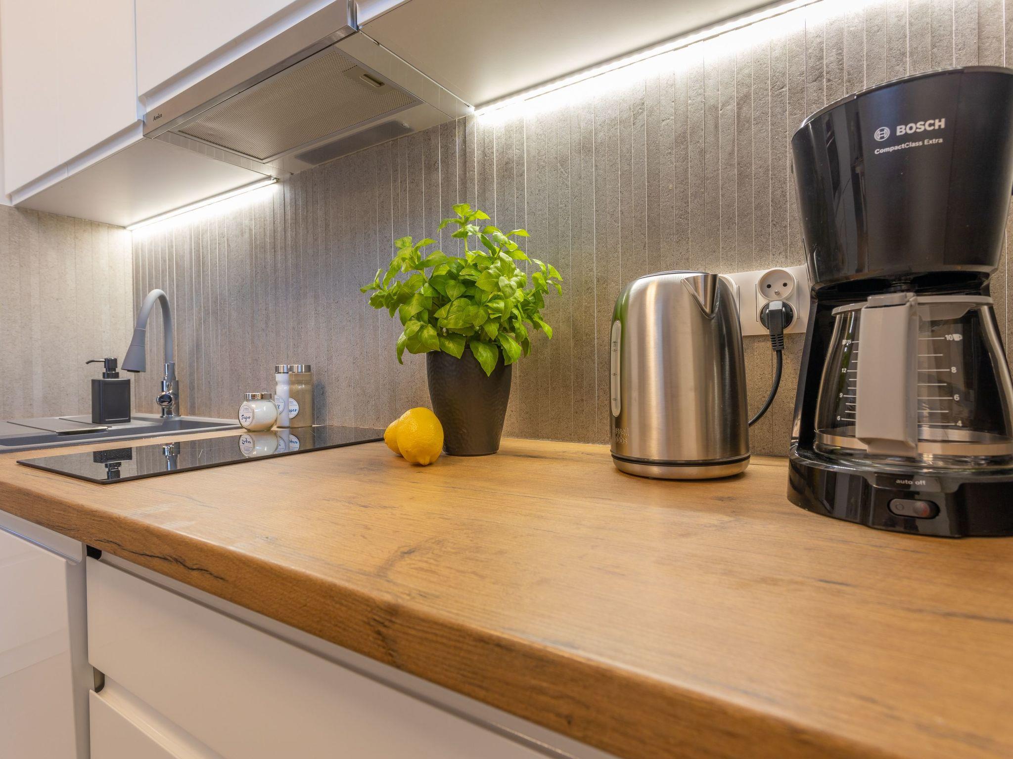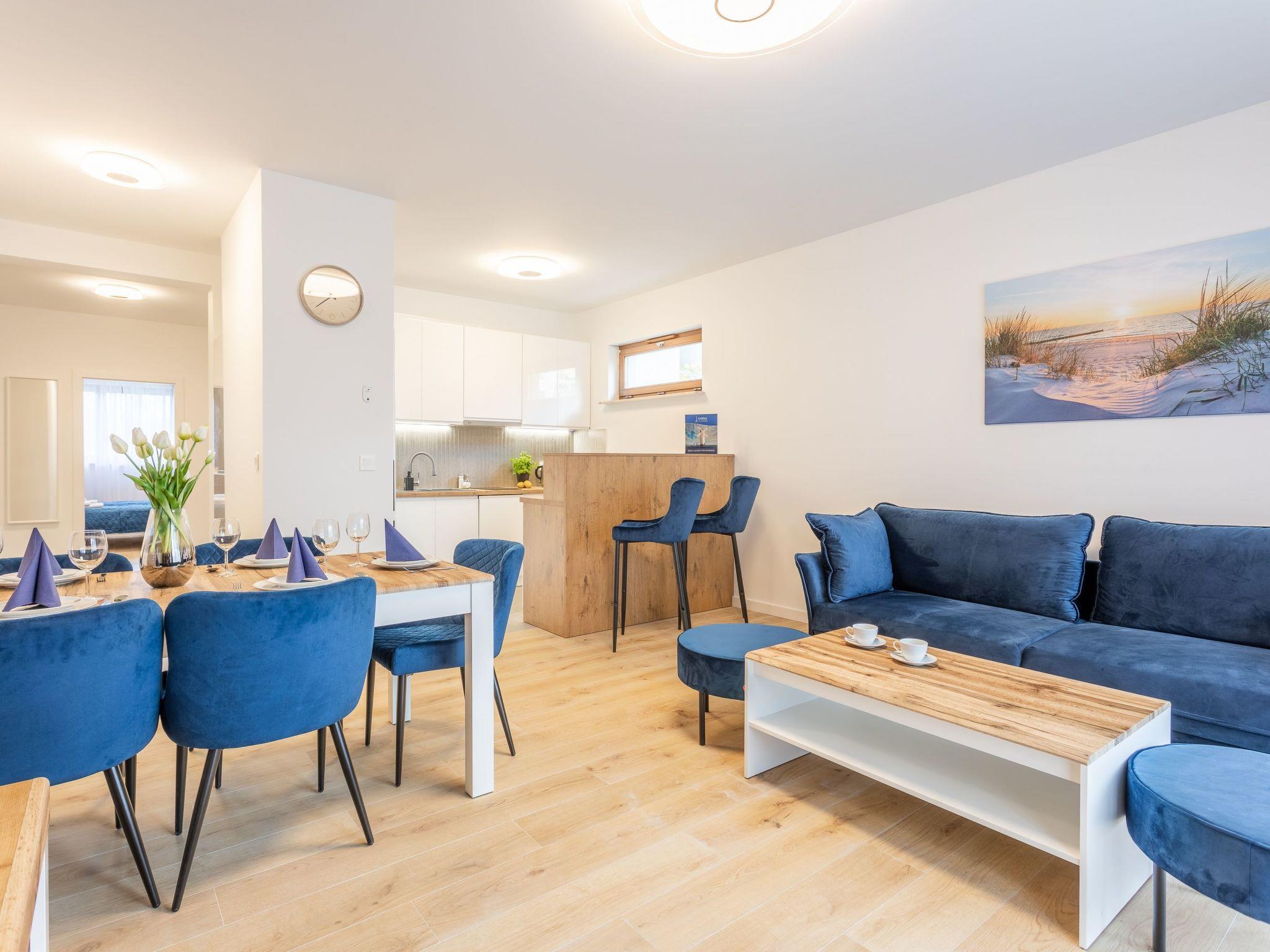 Das Apartment "Platan V" in Swinemünde ist ein einzigartiger Ort der Erholung und Entspannung, der von unseren Gästen geliebt wird. Es ist ein sehr geräumiges und luxuriöses Apartment mit zwei großen Schlafzimmern, einem Wohnzimmer mit einer gut ausgestatteten Küchenzeile und einem Badezimmer. Seine Gesamtfläche beträgt 75 m2. Die nutzbare Fläche wird durch die Terrasse erheblich vergrößert, auf der Sie angenehme Momente bei einer Tasse frisch gebrühtem Kaffee oder einem Glas Ihres Lieblingsweins in Gesellschaft Ihrer Lieben verbringen können. Die Wohnung wurde in einem minimalistischen Stil eingerichtet, es dominieren Grau- und Weißtöne, die mit einem tiefen Blauton gebrochen sind, sowie schöne Holzdetails, die dezent in moderne Möbel oder Accessoires eingeschmuggelt werden, die das Interieur erwärmen und mit ihrer unkonventionellen Textur begeistern Aussehen. Zudem fällt dank großer und zahlreicher Verglasungen viel Tageslicht ins Innere, was den Raum zusätzlich optisch vergrößert und ihm Schwung verleiht. Die Aufmerksamkeit wird auch auf ausdrucksstarke und sehr moderne Accessoires sowie interessante Formen und Texturen gelenkt - alle mit zarten und originellen Meeresmotiven. Ohne Zweifel müssen Sie auf dieses Deck steigen!