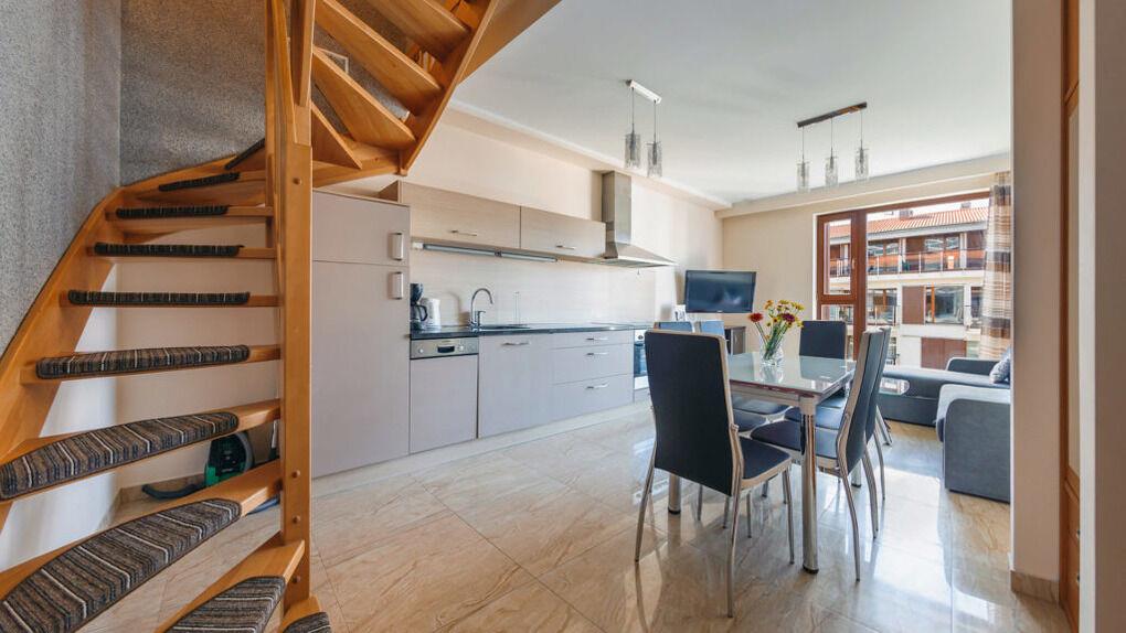 Wir bieten Ihnen Apartments gleich an einem breiten Sandstrand an. Im Teil der Apartments gibt es eine schöne Aussicht aufs Meer.