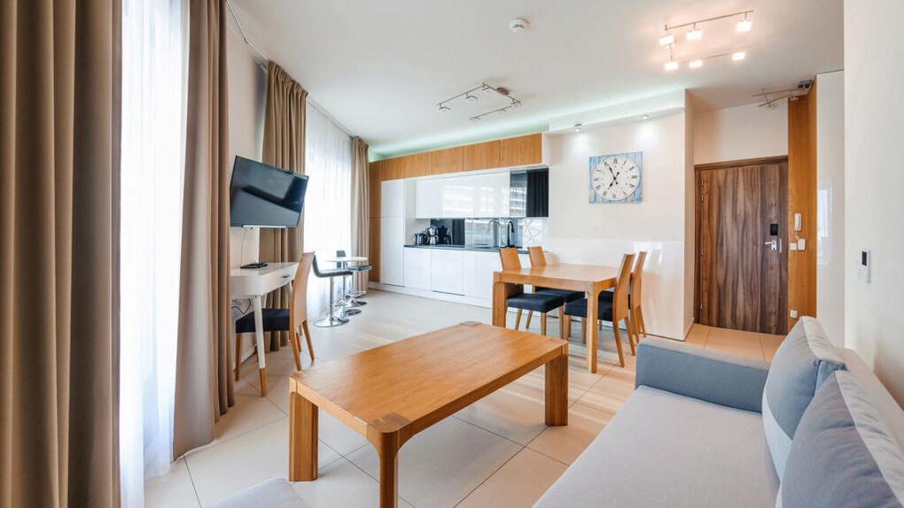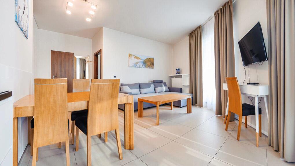 Wir bieten Ihnen moderne und geräumige Apartments in einem neu erbauten Gebäude, in unmittelbarer Nähe zur Promenade und direkt am schönen, sandigen Strand. Einige Apartments haben Meerblick und jeder verfügt über eine große Terrasse. Die Lage ist besonders für Personen, die nach Komfort suchen, sehr zu empfehlen.