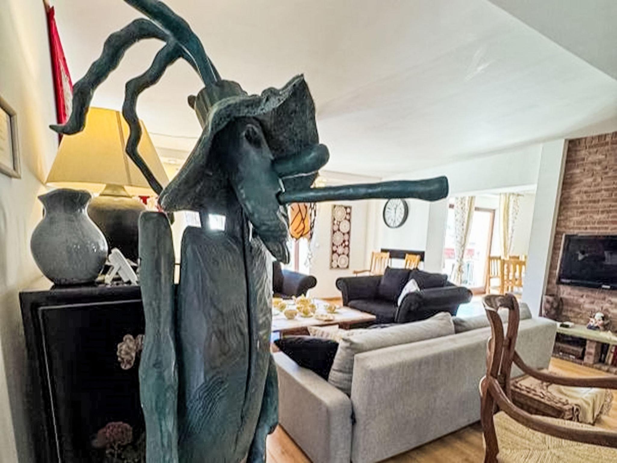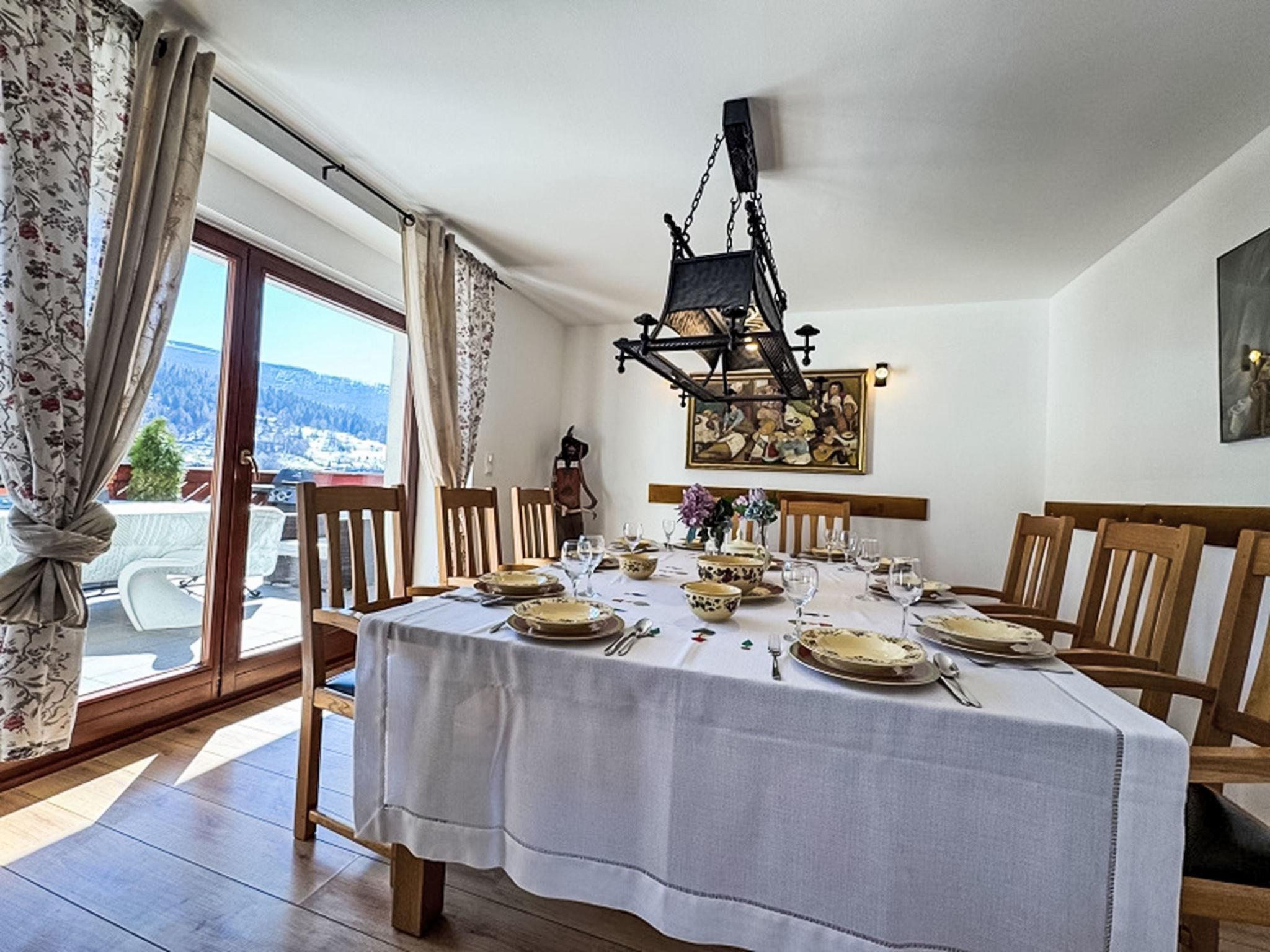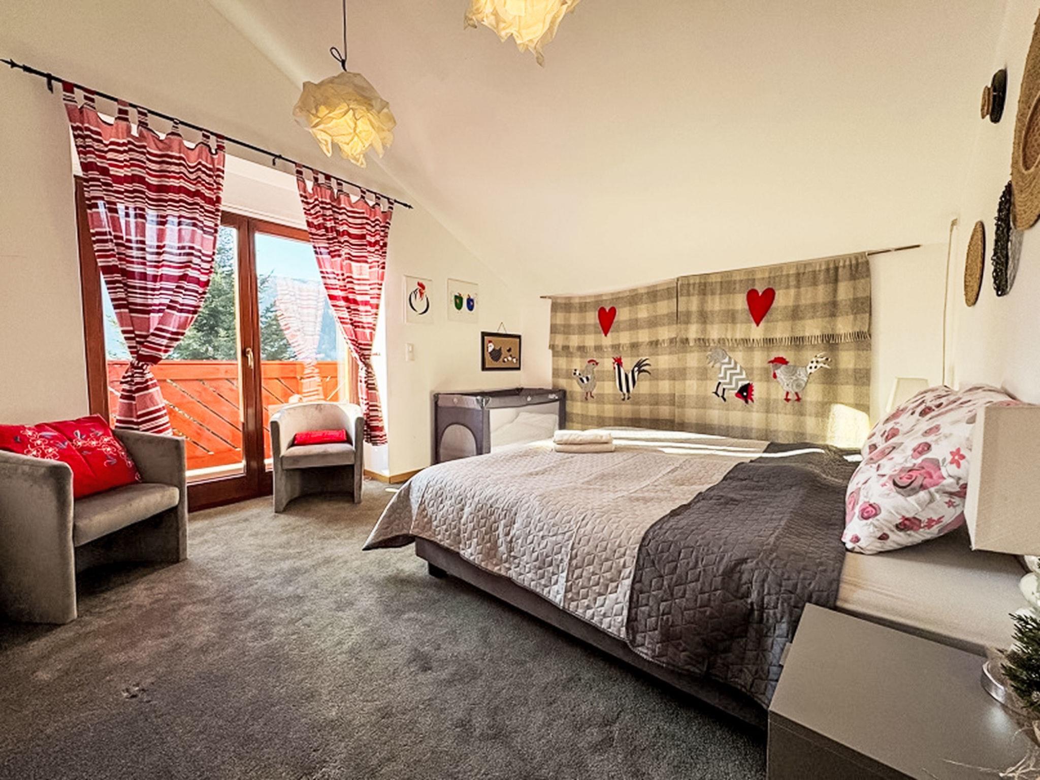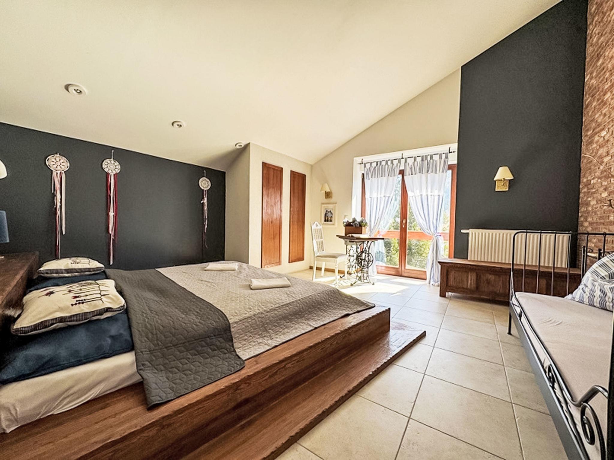 9-Zimmer-Villa 300 m2 auf 3 Stockwerken. Geräumig, luxuriös eingerichtet: offenes grosses Wohn-/Esszimmer mit 2 Diwanbetten, offenem Kamin und Sat-TV. Ausgang zur Terrasse. Grosse, offene Küche (Backofen, Geschirrspüler, 4 Glaskeramikplatten, Mikrowelle) mit Esstisch. Dusche/WC. Heizung, G-Heizung, Boiler (250 Liter). Unteres Geschoss: Spielzimmer mit Stereoanlage und DVD. Obergeschoss: Wohn-/Esszimmer mit offenem Kamin. Ausgang zur Terrasse. 1 Zimmer mit 1 franz. Bett. Sep. WC. 2. Obergeschoss: 1 Zimmer mit 2 Betten. 1 Zimmer mit 1 franz. Bett. 1 Zimmer mit 2 Betten und 1 franz. Bett. 1 Zimmer mit 1 Bett und 1 franz. Bett. 1 Zimmer mit 1 franz. Bett. Dusche/WC. Balkon 8 m2, Terrasse 18 m2. Terrassenmöbel, Liegestühle (6). Schöne Sicht auf die Berge und die Landschaft. Zur Verfügung: Waschmaschine. Internet (WLAN). Parkplatz (4 Autos), Garage beim Haus. Bitte beachten: Maximal 3 Haustiere/Hunde erlaubt. Rauchmelder. Unteres Erdgeschoss: SPA-Bereich (Hydromassage-Badewanne, Sauna, Dusche, WC), Kinderspielzimmer, Skiraum, Waschküche.
