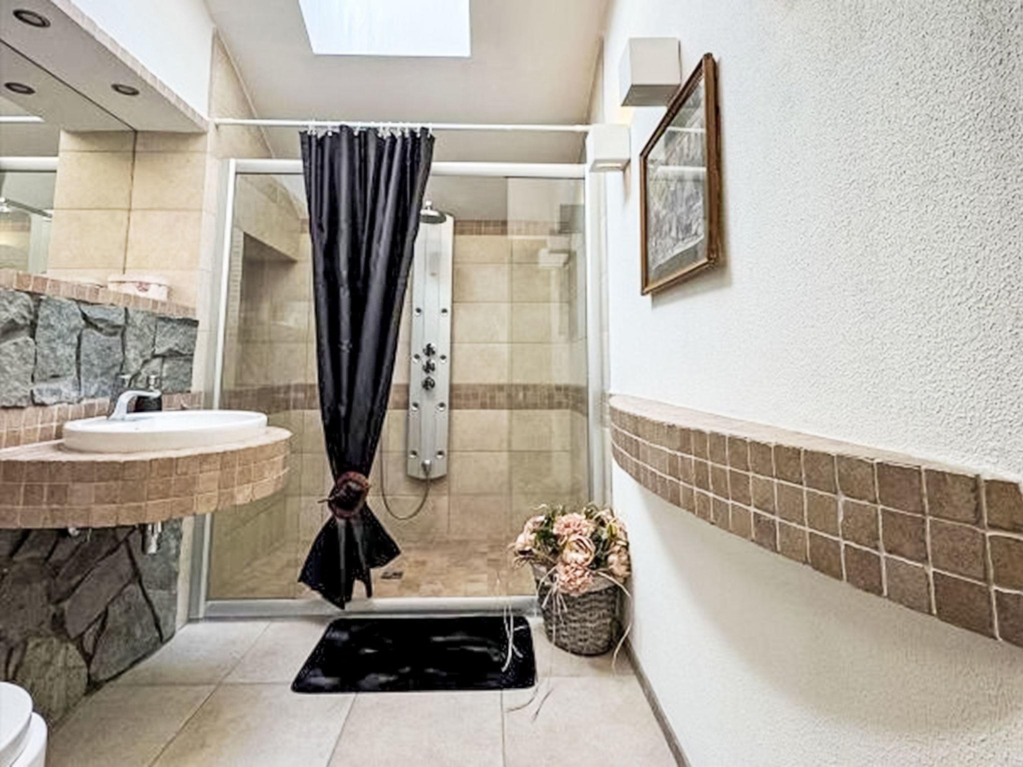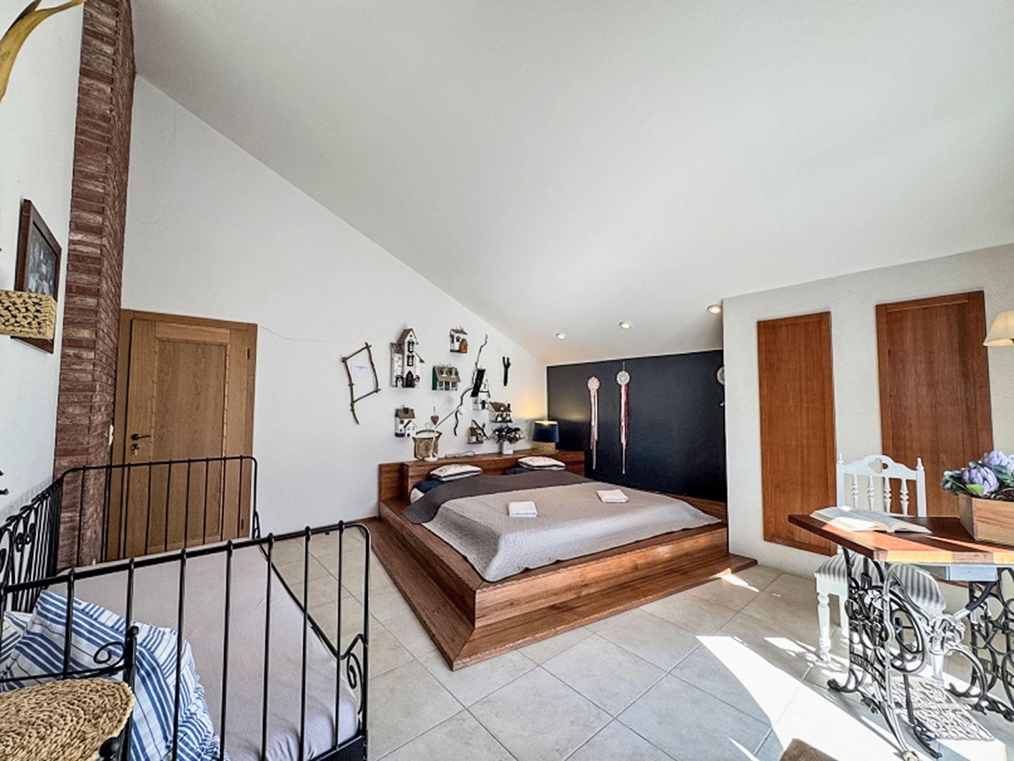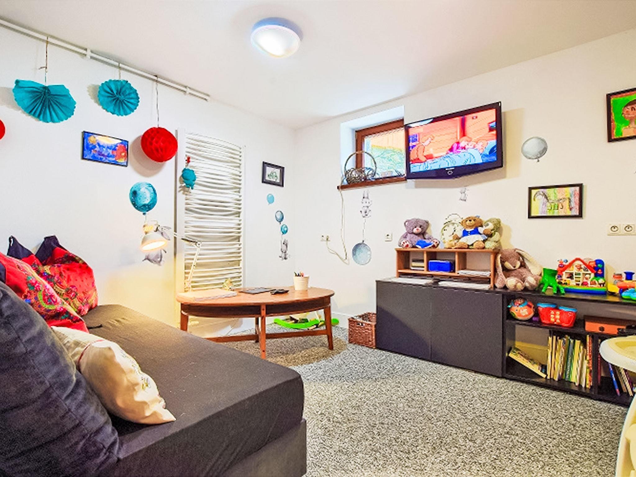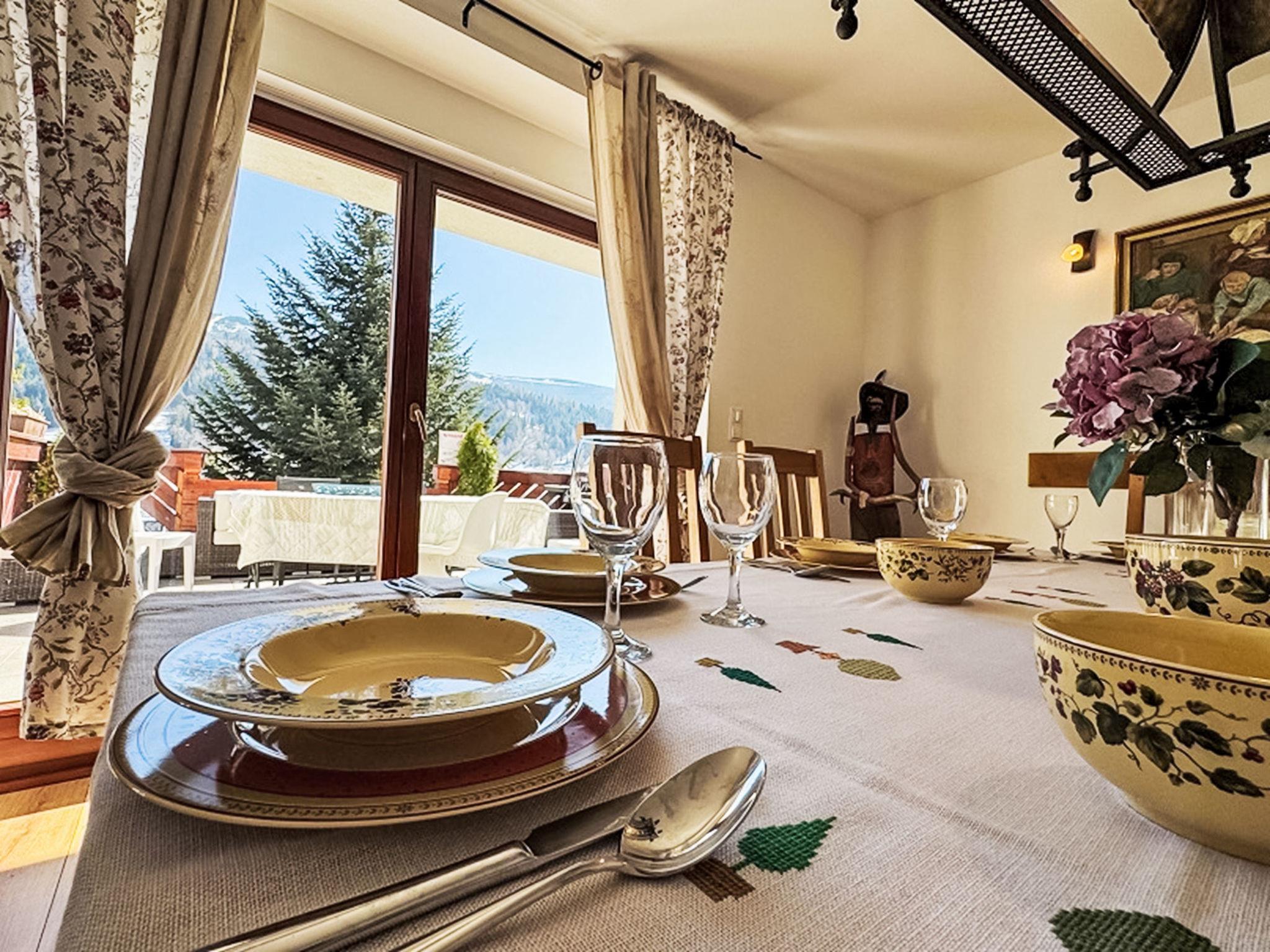 9-Zimmer-Villa 300 m2 auf 3 Stockwerken. Geräumig, luxuriös eingerichtet: offenes grosses Wohn-/Esszimmer mit 2 Diwanbetten, offenem Kamin und Sat-TV. Ausgang zur Terrasse. Grosse, offene Küche (Backofen, Geschirrspüler, 4 Glaskeramikplatten, Mikrowelle) mit Esstisch. Dusche/WC. Heizung, G-Heizung, Boiler (250 Liter). Unteres Geschoss: Spielzimmer mit Stereoanlage und DVD. Obergeschoss: Wohn-/Esszimmer mit offenem Kamin. Ausgang zur Terrasse. 1 Zimmer mit 1 franz. Bett. Sep. WC. 2. Obergeschoss: 1 Zimmer mit 2 Betten. 1 Zimmer mit 1 franz. Bett. 1 Zimmer mit 2 Betten und 1 franz. Bett. 1 Zimmer mit 1 Bett und 1 franz. Bett. 1 Zimmer mit 1 franz. Bett. Dusche/WC. Balkon 8 m2, Terrasse 18 m2. Terrassenmöbel, Liegestühle (6). Schöne Sicht auf die Berge und die Landschaft. Zur Verfügung: Waschmaschine. Internet (WLAN). Parkplatz (4 Autos), Garage beim Haus. Bitte beachten: Maximal 3 Haustiere/Hunde erlaubt. Rauchmelder. Unteres Erdgeschoss: SPA-Bereich (Hydromassage-Badewanne, Sauna, Dusche, WC), Kinderspielzimmer, Skiraum, Waschküche.