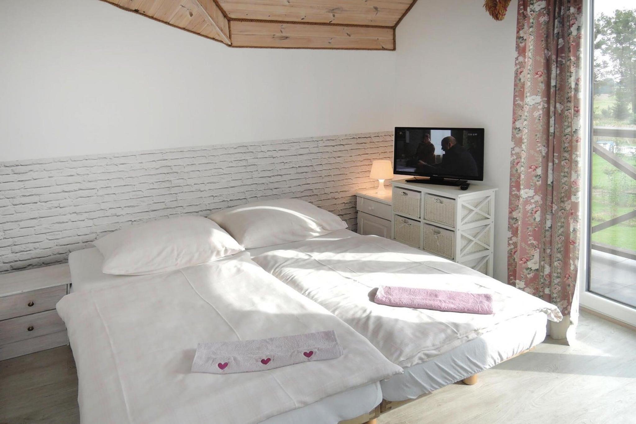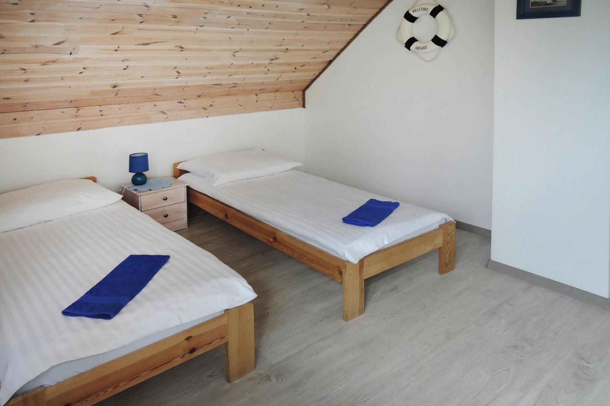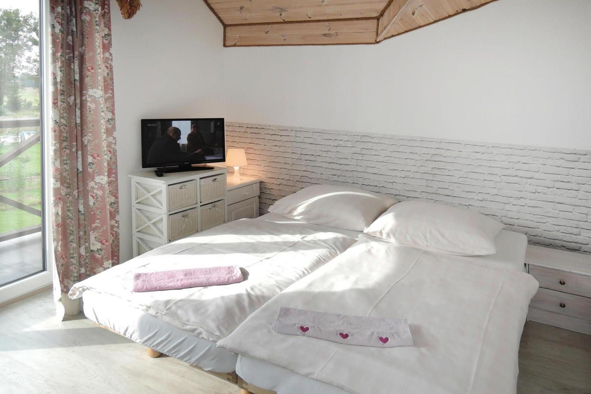 Direkter Zugang zum See mit Naturstrand: XXL-Doppelhaushälfte mit Platz für bis zu 16 Personen, nur 100 Meter bis zur Bademöglichkeit Naturstrand! Das große Haus mit seiner hellen und freundlichen Einrichtung bietet mit seinen 7 Schlafräumen für jeden genügend Platz und Rückzugsmöglichkeiten. Auf der schönen Terrasse können Sie bei gesundem Klima frühstücken, abends grillen oder einfach nur entspannen und die Ruhe genießen. Zwei Ruderboote und ein Kanu stehen Ihnen kostenfrei zur Verfügung - ideal für Entdeckertouren auf dem Wasser. Ihr Feriendomizil liegt am Rand des kleinen Dorfes Troszyn, nur 7 Kilometer von Wolin entfernt. Das Dorf ist ein Paradies für Naturliebhaber, Angler, Pilzesammler und Jäger. Wenn Sie möchten, können Sie landwirtschaftliche Produkte von dem Bauernhof vor Ort kaufen. HighLights : WLAN 1 Kanu 2 Ruderboote Aktivitäten in der Nähe : In der 7 kilometer entfernten Stadt Wolin sind schon einige interessante Sehenswürdigkeiten zu entdecken: der Markt mit dem Heimatmuseum, das Wikinger Freilichtmuseum, die Holländische Windmühle oder der Galgenberg mit seinen Hügelgräbern aus dem 11. Jahrhundert. Dann können Sie natürlich neben einem Besuch des Wisentgeheges im Nationalpark herrliche Radtouren oder Wanderungen an der beeindruckenden Steilküste unternehmen oder in Richtung der Vogelschutzgebiete am Stettiner Haff starten. Und für ganz entspannte Tage machen Sie sich einfach auf zu einem der schönen Seebäder mit ihren feinen, breiten Stränden Mobilität : Nicht geeignet für Personen mit eingeschränkter Mobilität