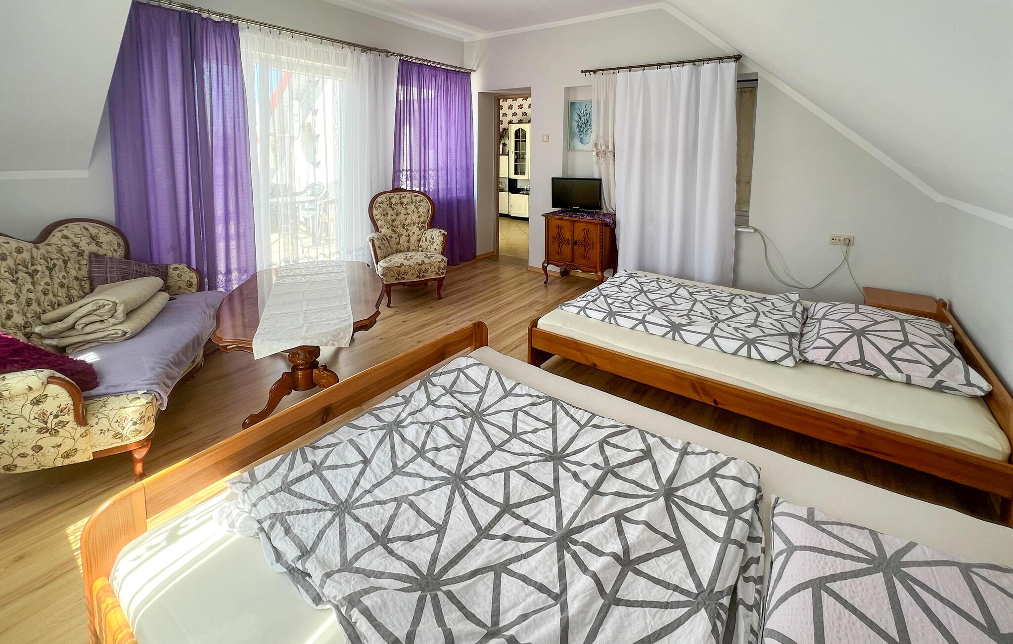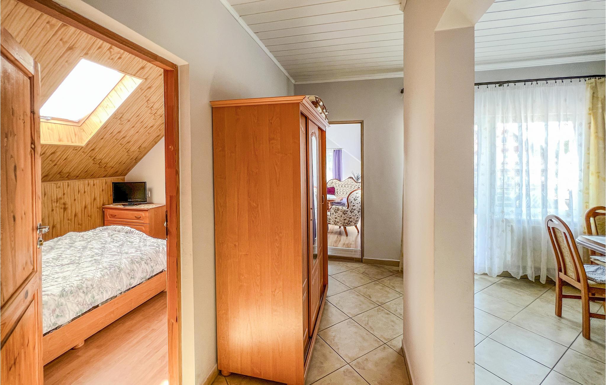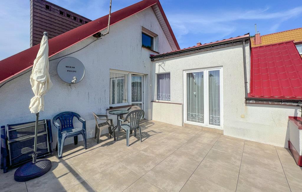 Diese Ferienwohnung befindet sich im 2. Stock in Uniescie. Sie verfügt über Wohnzimmer mit Küche sowie Schlaf- und Badezimmer. Es gibt auch eine große Terrasse mit Seeblick. Die Lage ist ruhig und ideal für Angler. Der schöne Strand in Uniescie ist sehr empfehlenswert. Die Anlegestelle der Ostseefischerboote ist sehr populär, weil Sie hier Fische direkt aus dem Meer sowie frisch geräucherte Aale, Lachse, Heilbutte, Heringe und andere Fische kaufen können.