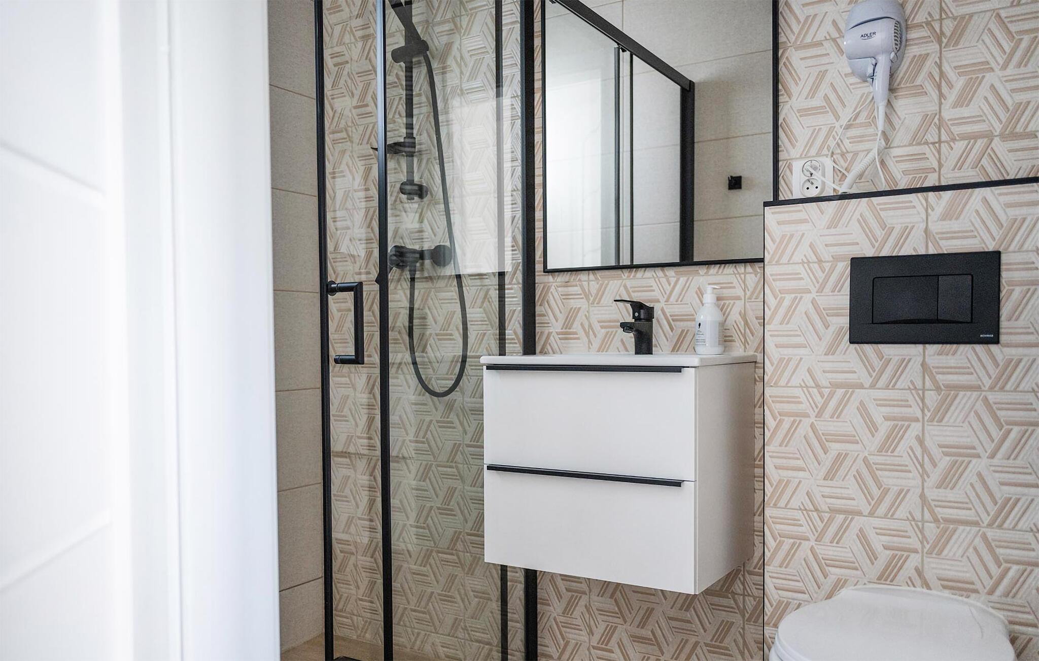 - WC mit warmem und kaltem Wasser, Dusche
