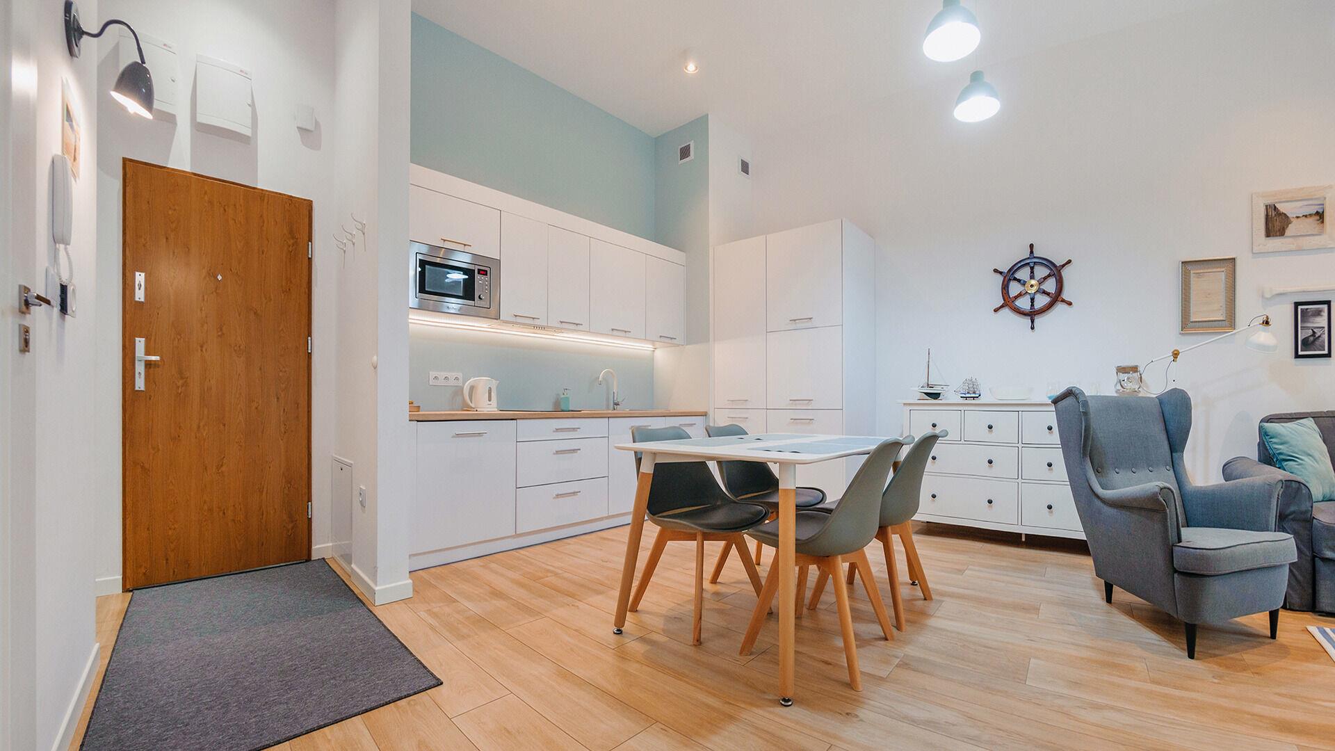 Die Apartments fügen sich harmonisch in die Küstenumgebung ein. Eine große Grünfläche rund um die Anlage, Ruheplätze und ein großzügiger Kinderspielplatz schaffen eine einzigartige Atmosphäre und bilden eine Oase für Kinder. Auch aktive Menschen und Senioren finden hier einen ruhigen Rückzugsort und einen gemütlichen Ort zum Ausruhen.