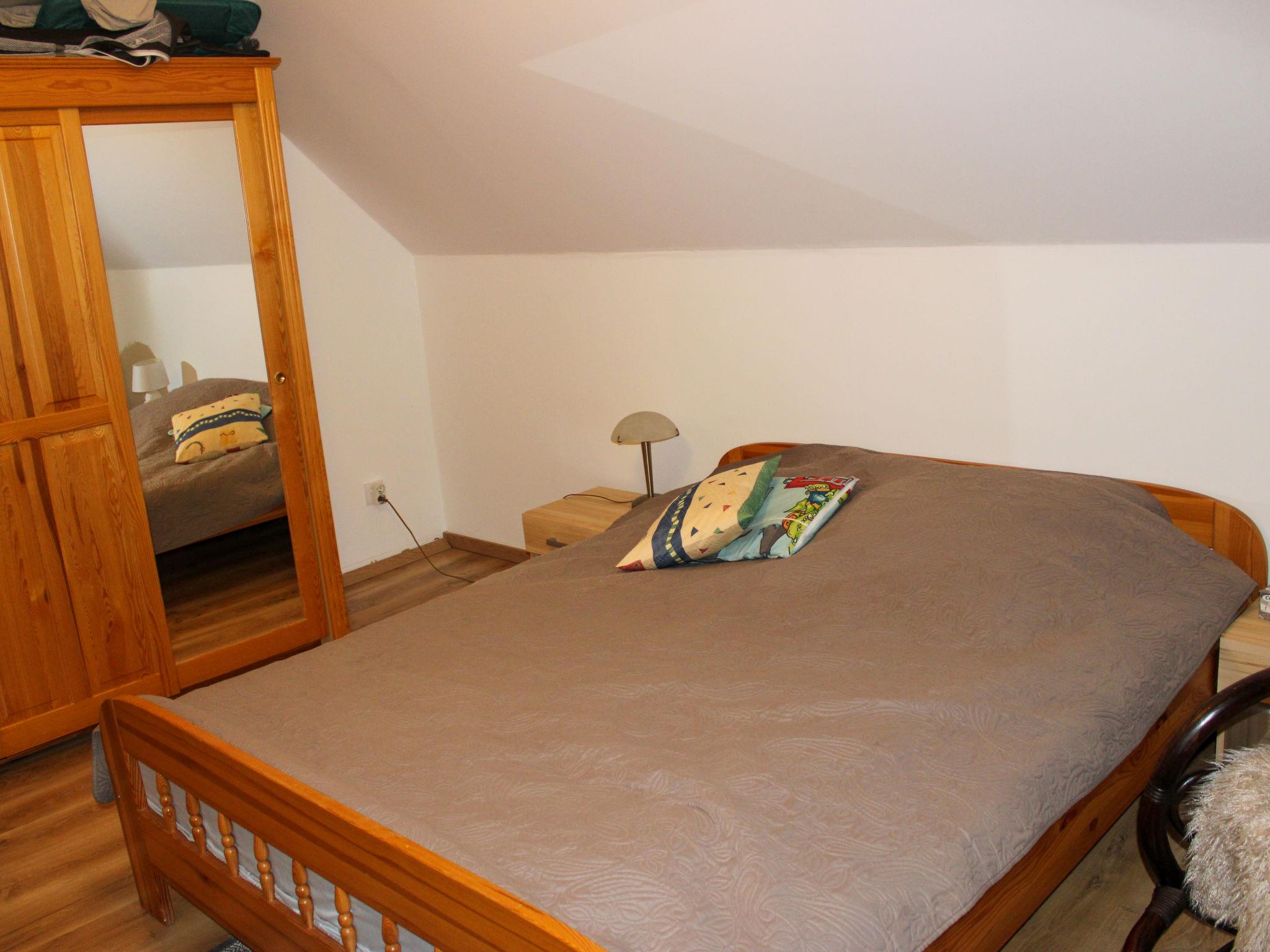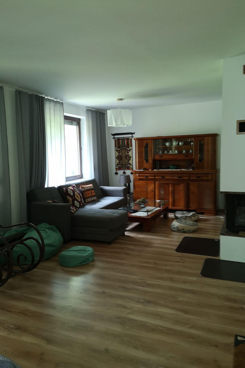 "Walpusz", 4-Zimmer-Haus 130 m2. Komfortabel und gemütlich eingerichtet: Wohn-/Esszimmer mit 1 Klappbett, offenem Kamin und Sat-TV. Ausgang zum Garten, zur Terrasse. Küche (Backofen, Geschirrspüler, 4 Flammen, Mikrowelle, Tiefkühler). Dusche/WC. E-Heizung. Obergeschoss: 1 Zimmer mit 1 Doppelbett. 1 Zimmer mit 1 Doppelbett. 1 Zimmer mit 2 Betten. Dusche/Bidet/WC. E-Heizung. Terrasse 8 m2, grosser Garten 500 m2. Terrassenmöbel, Liegestühle (2). Sicht auf den Garten und den Wald. Zur Verfügung: Waschmaschine. Internet (WLAN). Garage. Maximal 1 Haustier/Hund erlaubt.