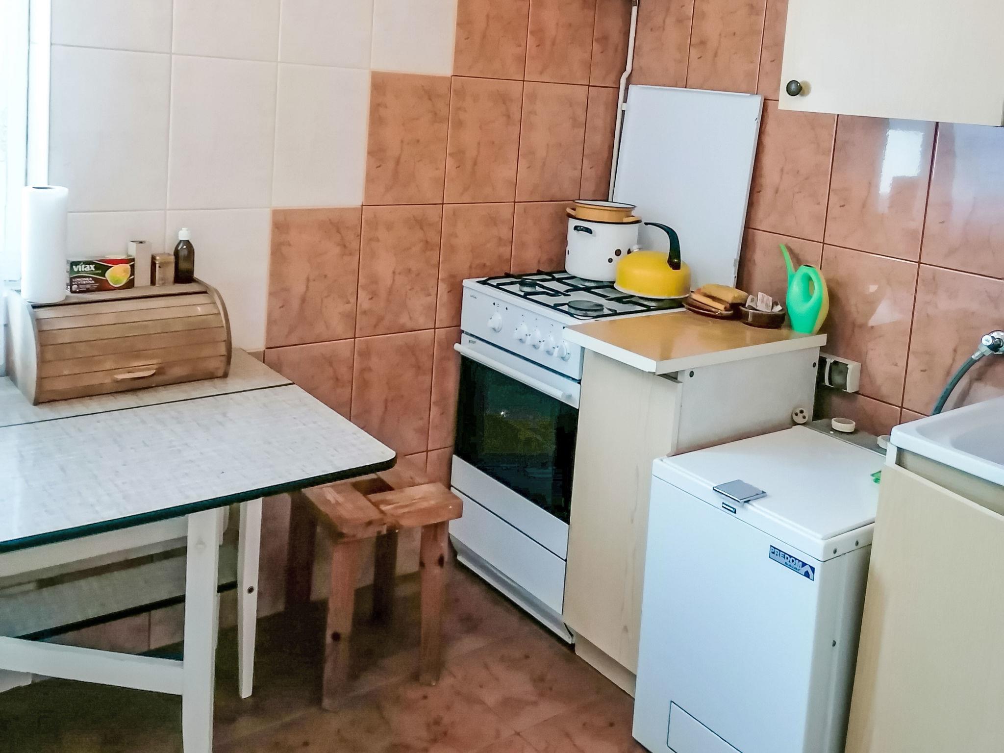 Mehrfamilienhaus. Im Ortszentrum von Warszawy, in einem Wohnquartier, in einer Sackgasse, an einer Hauptstrasse im Grünen. Zur Mitbenutzung: Hof. Kinderspielplatz. Im Hause: Zentralheizung, Waschmaschine. Öffentliche Parkplätze. Lebensmittelgeschäft 30 m, Supermarkt 350 m, Restaurant 25 m, Bushaltestelle 150 m, Hallenbad 100 m. Tennis 100 m. Besitzer nutzt Räume im Haus.